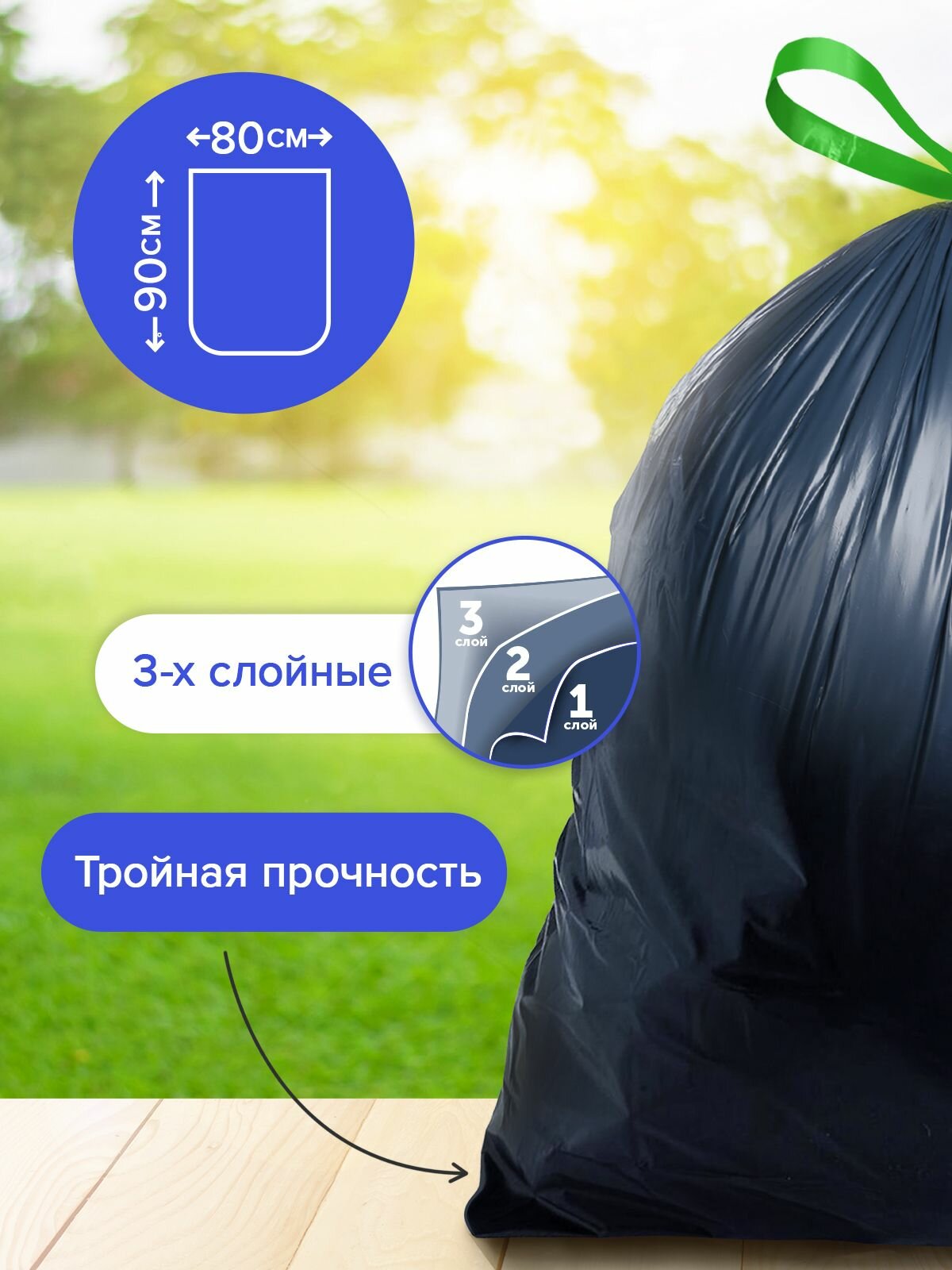 Мешок мусорный 180 литров, сверхпрочный, для строительного мусора, для уборки территории, для уборки после ремонта