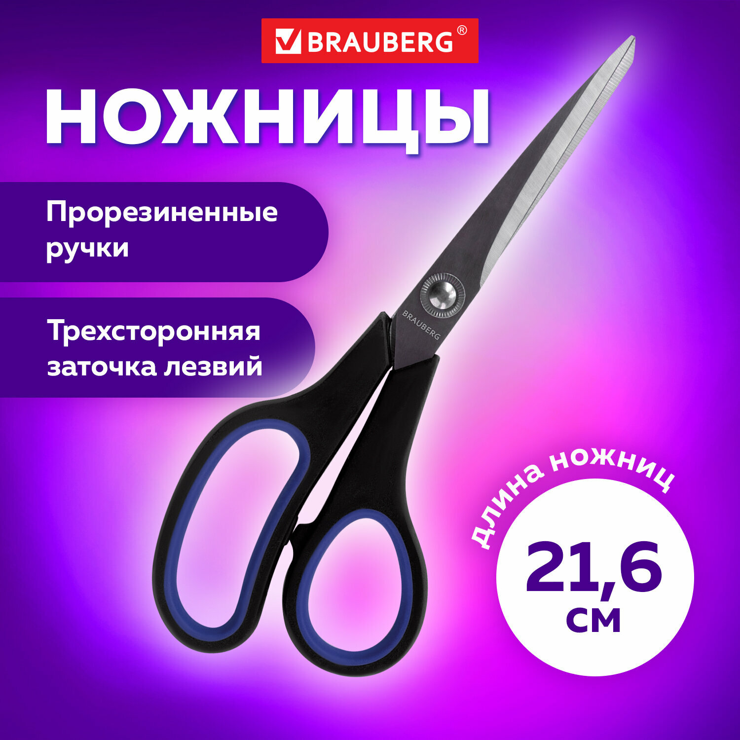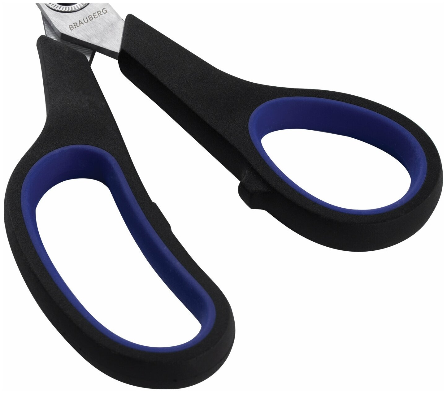 Ножницы BRAUBERG "Soft Grip", 216 мм, черно-синие, резиновые вставки, 3-х сторонняя заточка, 230763