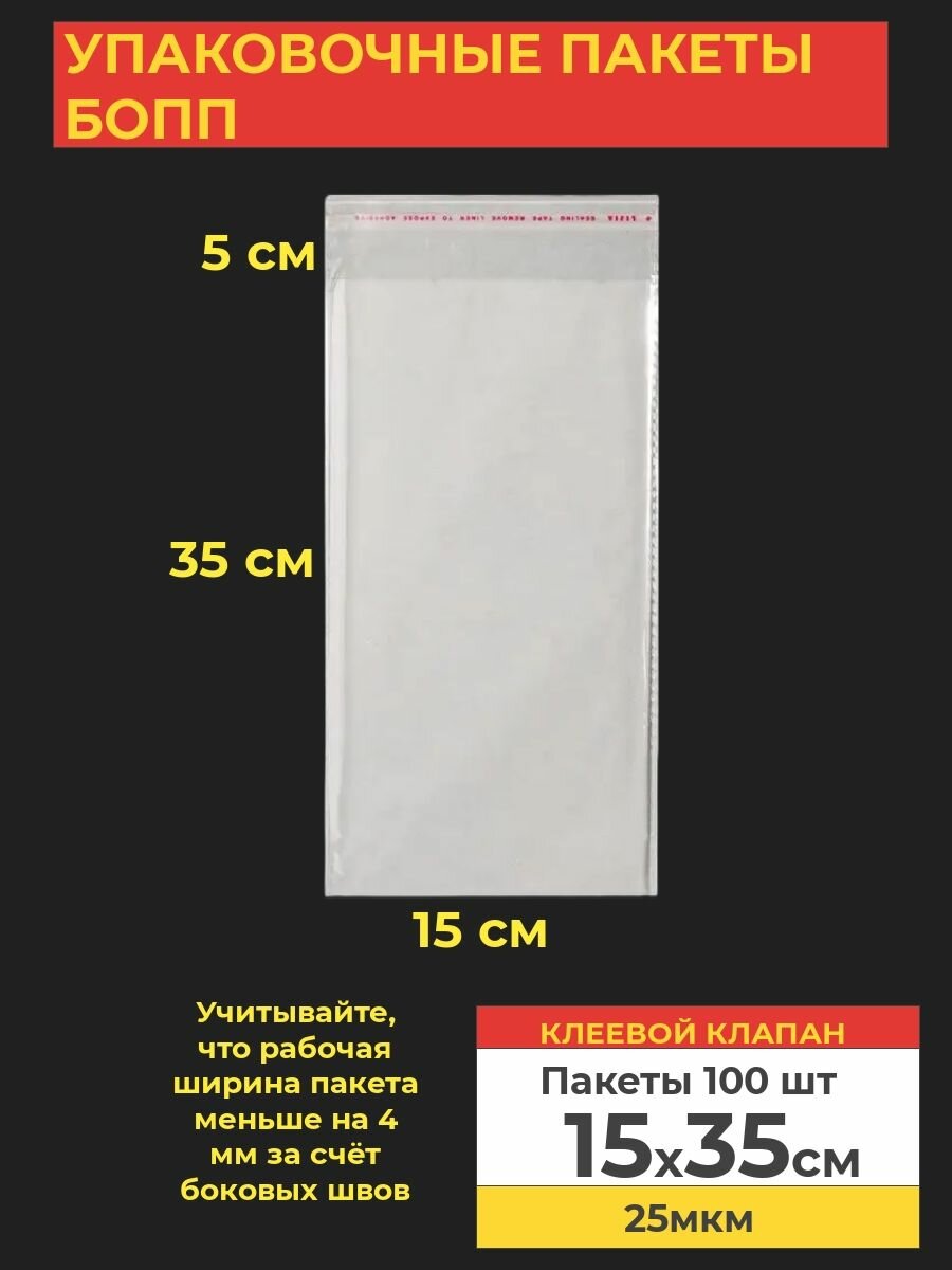 Купить Упаковочные бопп пакеты с клеевым клапаном, 15*35 см,100 шт.