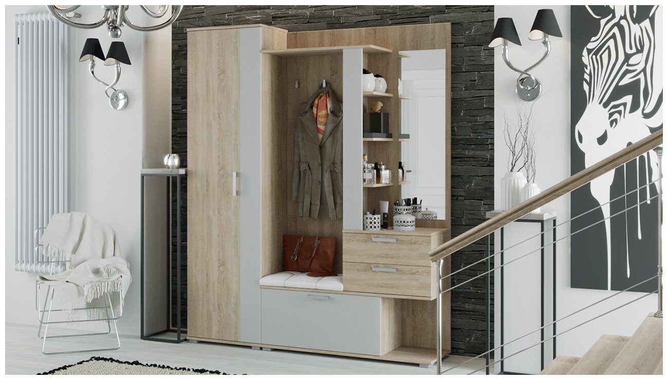 Прихожая мебель Эрика № 1, ТриЯ, (ВхГхШ) 200 x 35.7 x 164см, Дуб Сонома/Белый интересное: