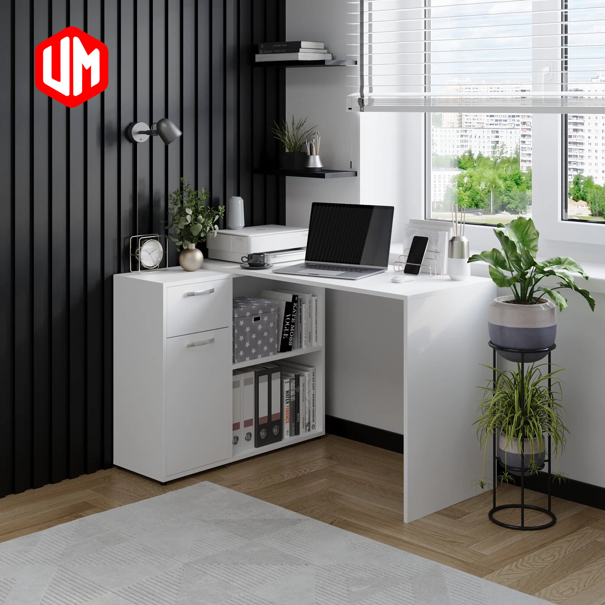 Угловой письменный стол UnitsMebel с тумбой и ящиками для хранения, 73х50х50см