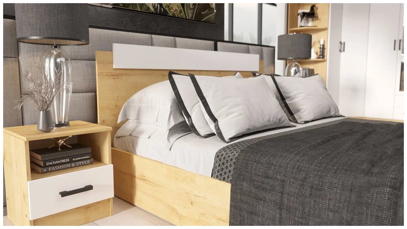 Двуспальная кровать Эра "Эко" цвет Дуб Вотан/Белый гладкий 160х200х85 см