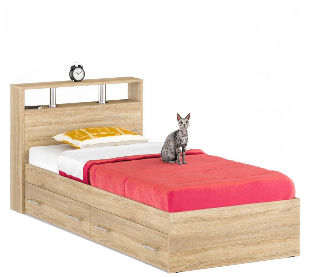 Кровать с ящиками Камелия 900, цвет дуб сонома, ШхГхВ 93,5х217х78,2 см, спальное место 900х2000 мм, без матраса, основание есть