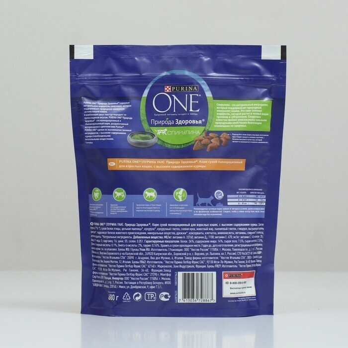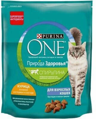 PURINA ONE Природа Здоровья 680 г сухой корм для взрослых кошек с высоким содержанием курицы и спирулиной