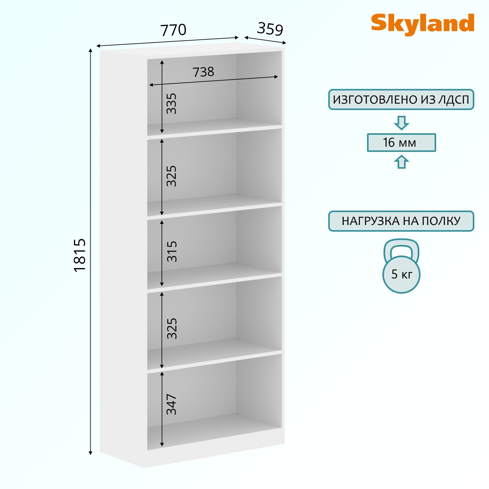 Стеллаж Skyland широкий SR-5W Белый 770х359х1815 SIMPLE