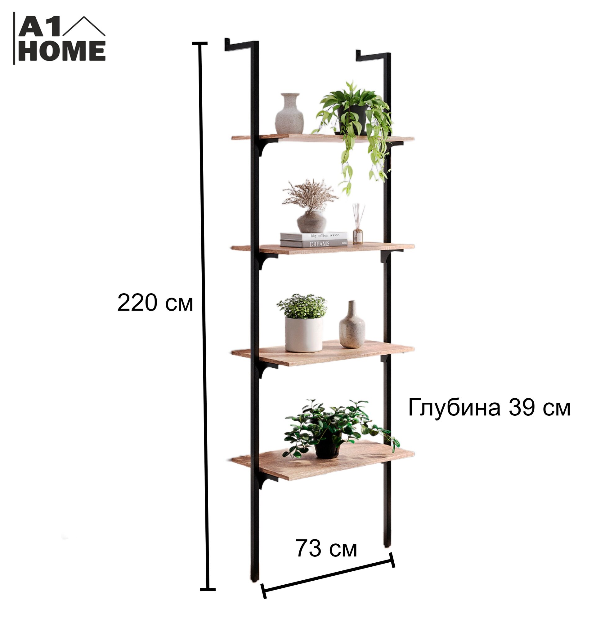 Стеллаж Лофт GARDENA 4 полки (220х73х39см) Дуб Сонома