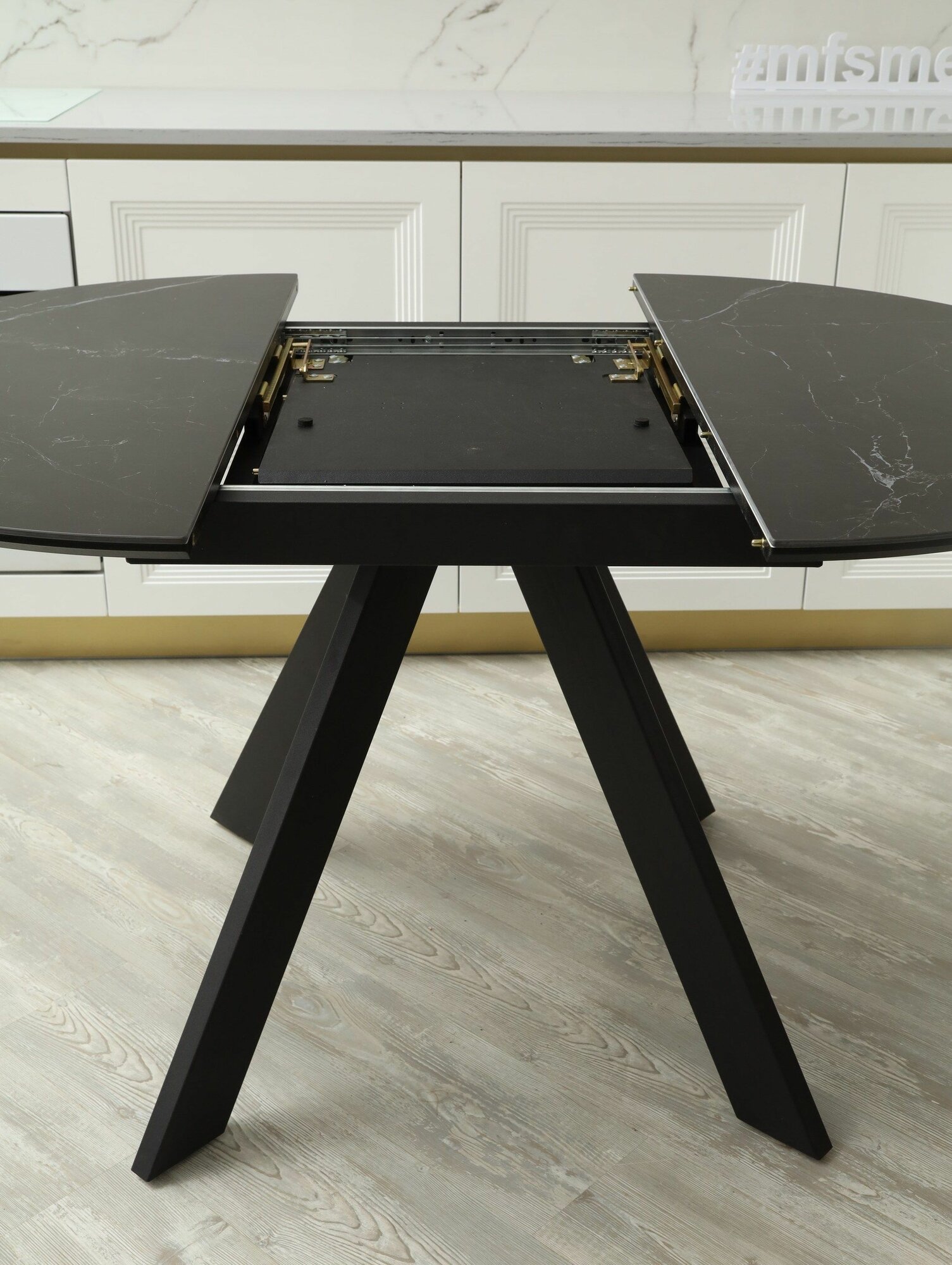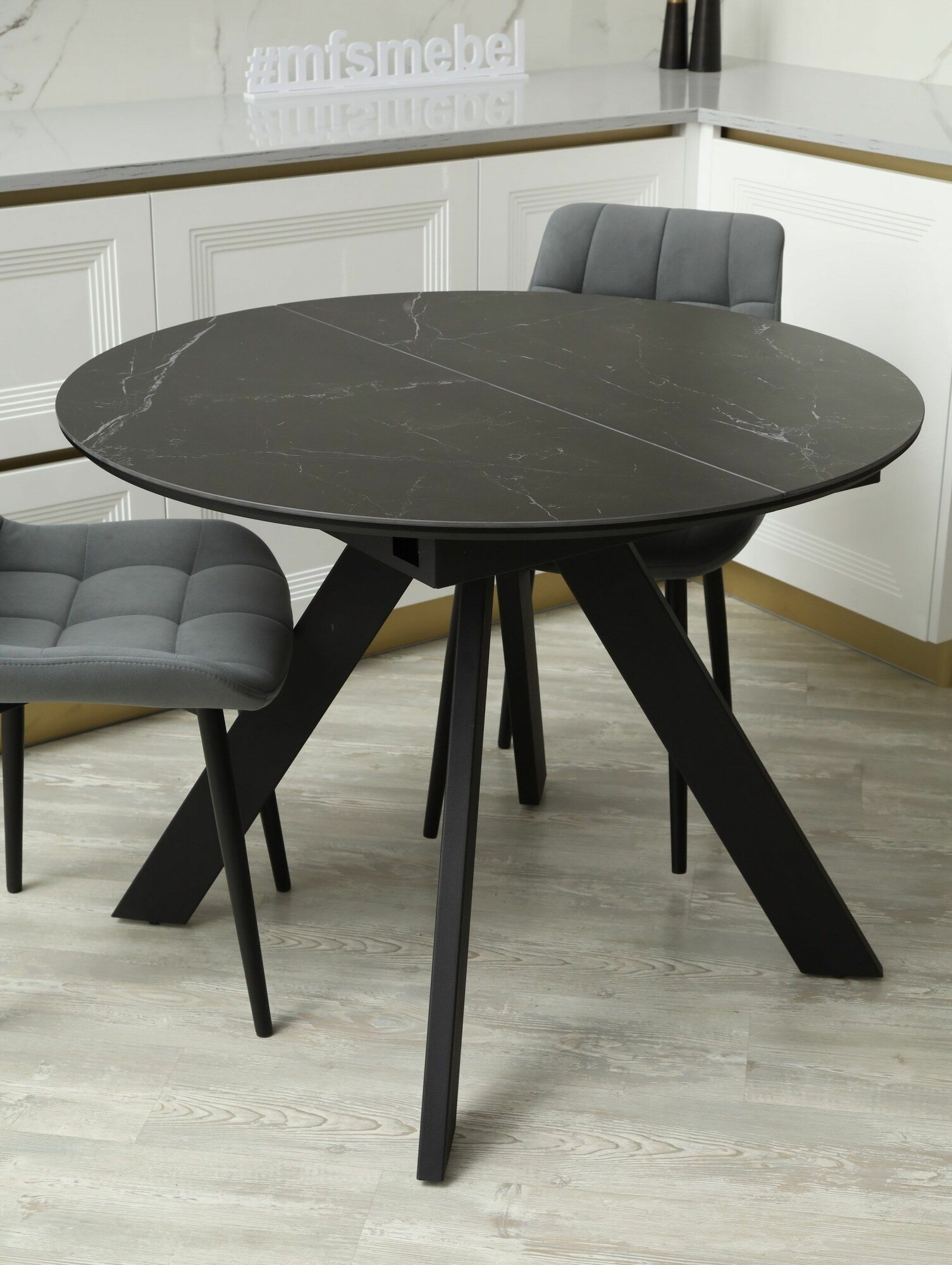 Купить Стол обеденный раскладной "бонжур" круглый из керамики Черный мрамор