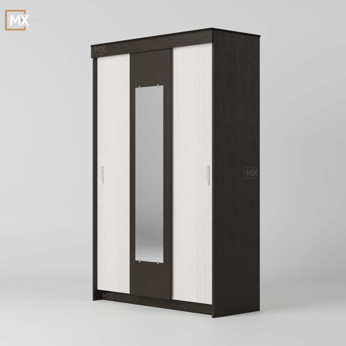 Шкаф-купе Бруно-5/Бася, Венге/Лоредо, ЛДСП, с зеркалом, полками для дома 1300х500х2000 тэкс