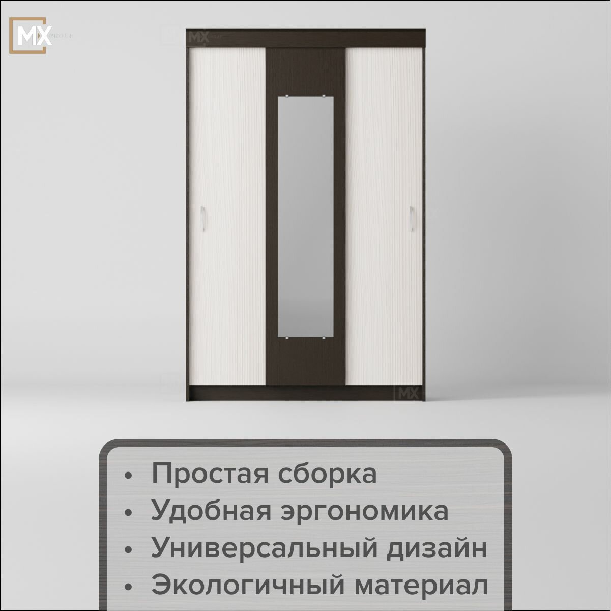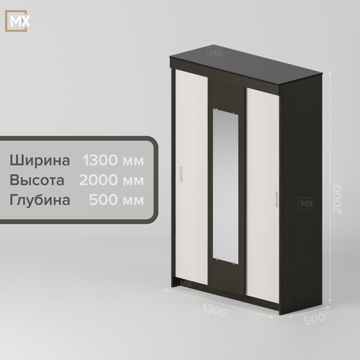 Шкаф-купе Бася/Бассо Венге/Дуб молочный, ЛДСП, с зеркалом, полками, штангой, для прихожей ,спальни, гостиной, 1300х500х2000, тэкс