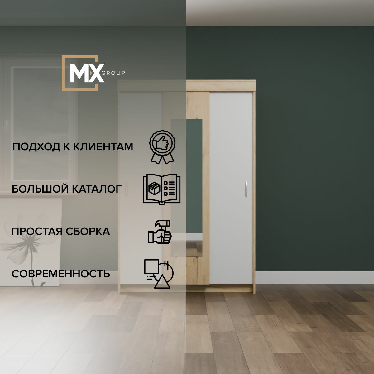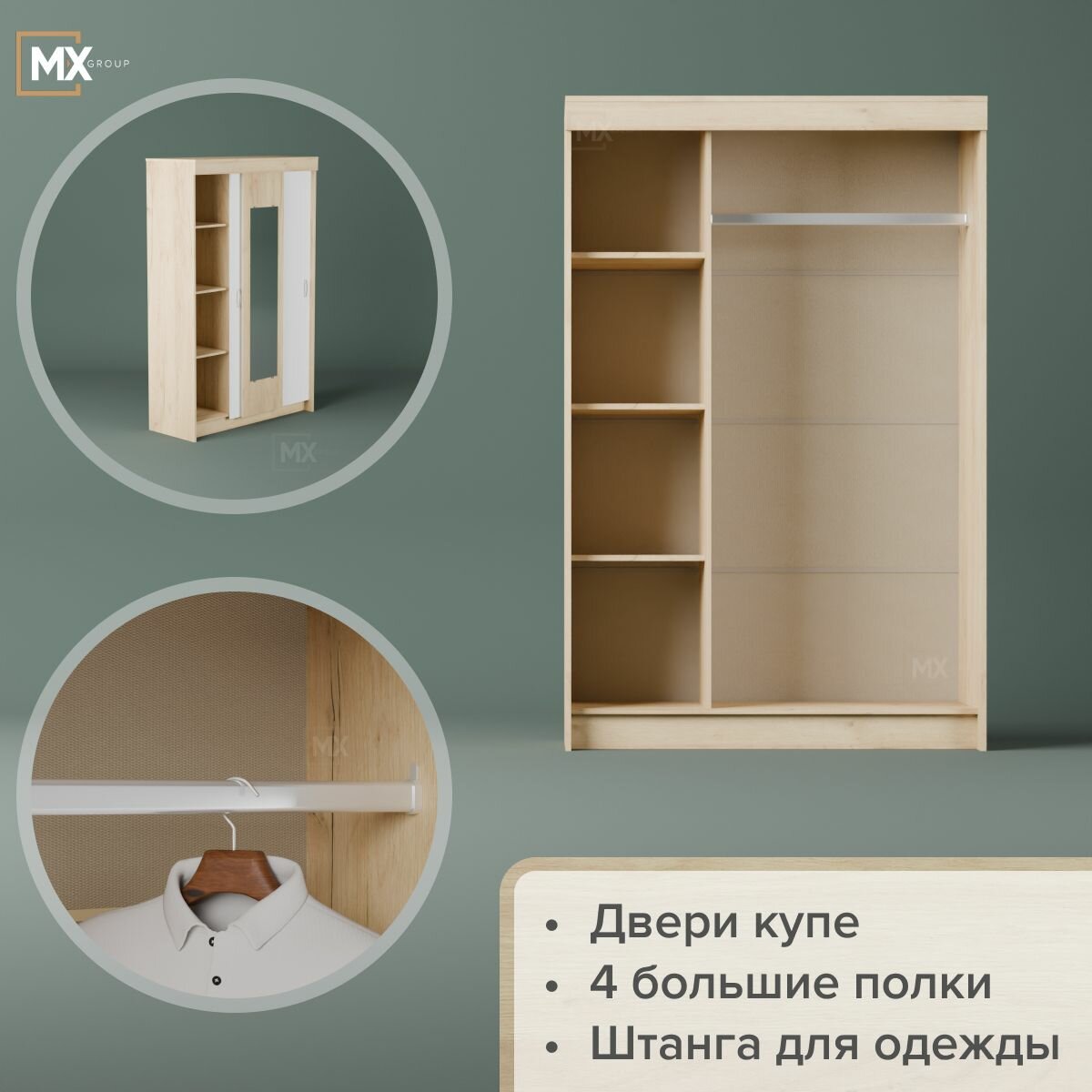 Шкаф-купе Бруно 5/ Бася/Бассо/ Бруно 5 Белый/Дуб вотан, ЛДСП, с зеркалом, полками, штангой, для прихожей 1300х500х2000, тэкс