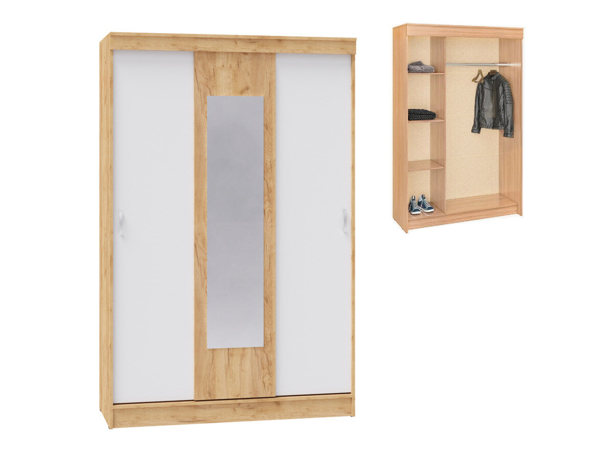 Купить Шкаф-купе Бася/Бассо Белый/Дуб Крафт золотой, ЛДСП, с зеркалом, полками, штангой, для прихожей 1300х500х2000, тэкс