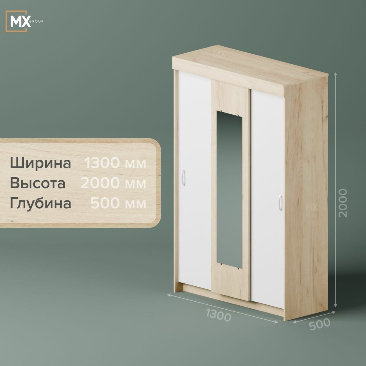 СохранитьШкаф-купе Бася/Бассо Белый/Дуб Крафт золотой, ЛДСП, с зеркалом, полками, штангой, для прихожей 1300х500х2000, тэкс интересное: