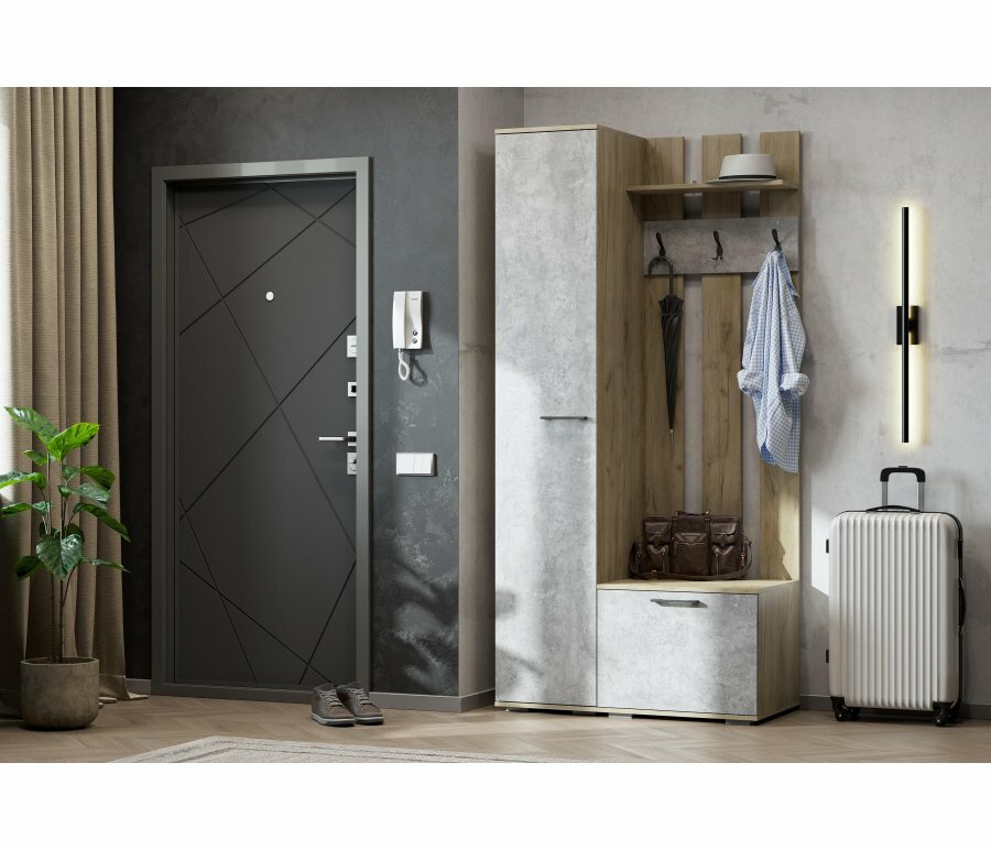 мс для прихожей Бостон ШК-800 дуб крафт серый/бетонный камень (Интерьер-Центр)