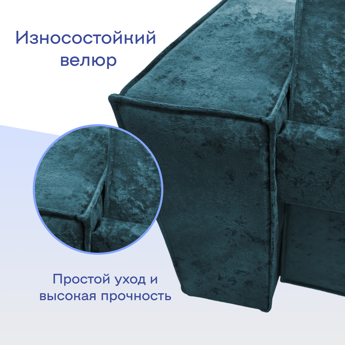 Угловой диван-кровать с оттоманкой в стиле Лофт, бирюзовый велюр, спальное место 160х290 интересное: