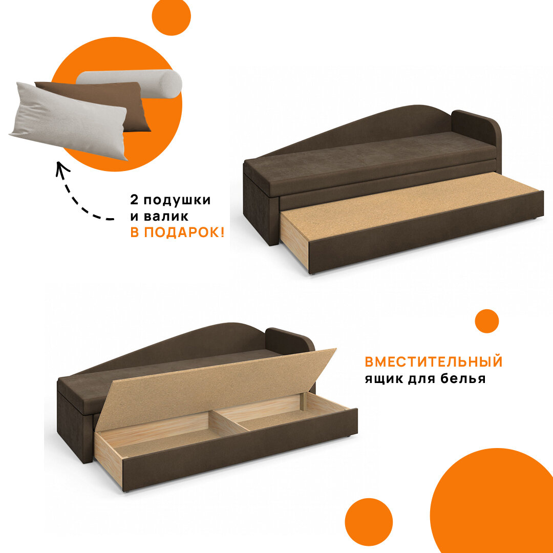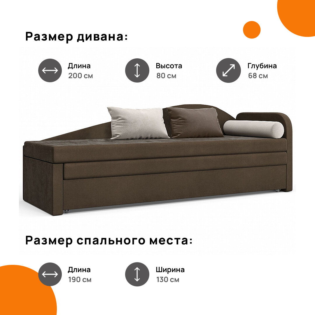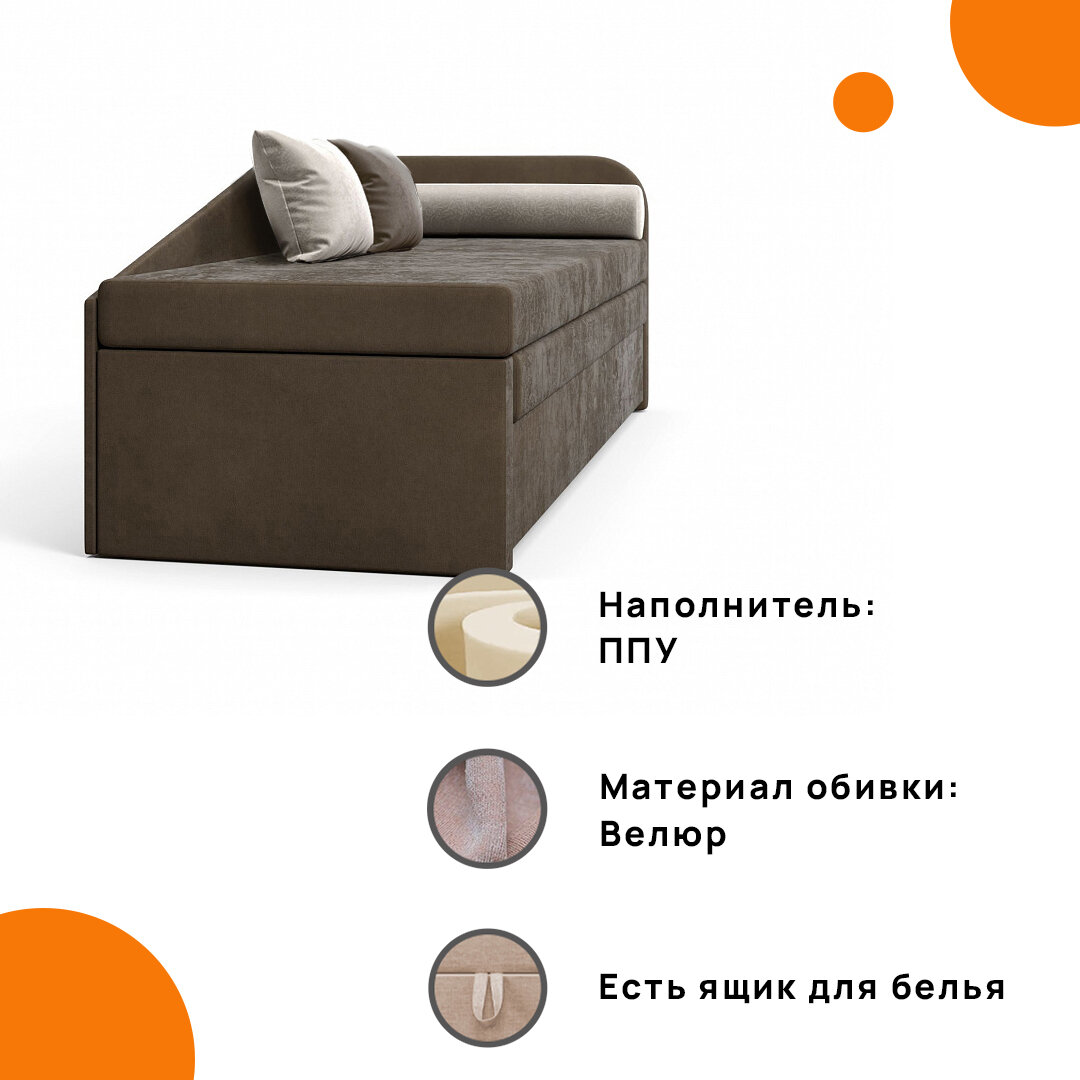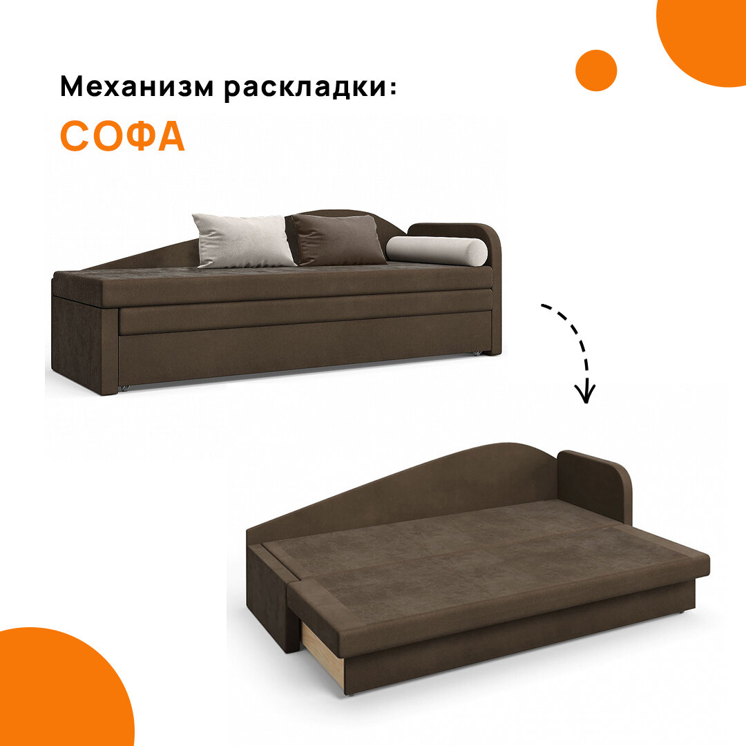 Диван-кушетка Гриф, правый, велюр, коричневый, 200х73х80 см, MebelVia