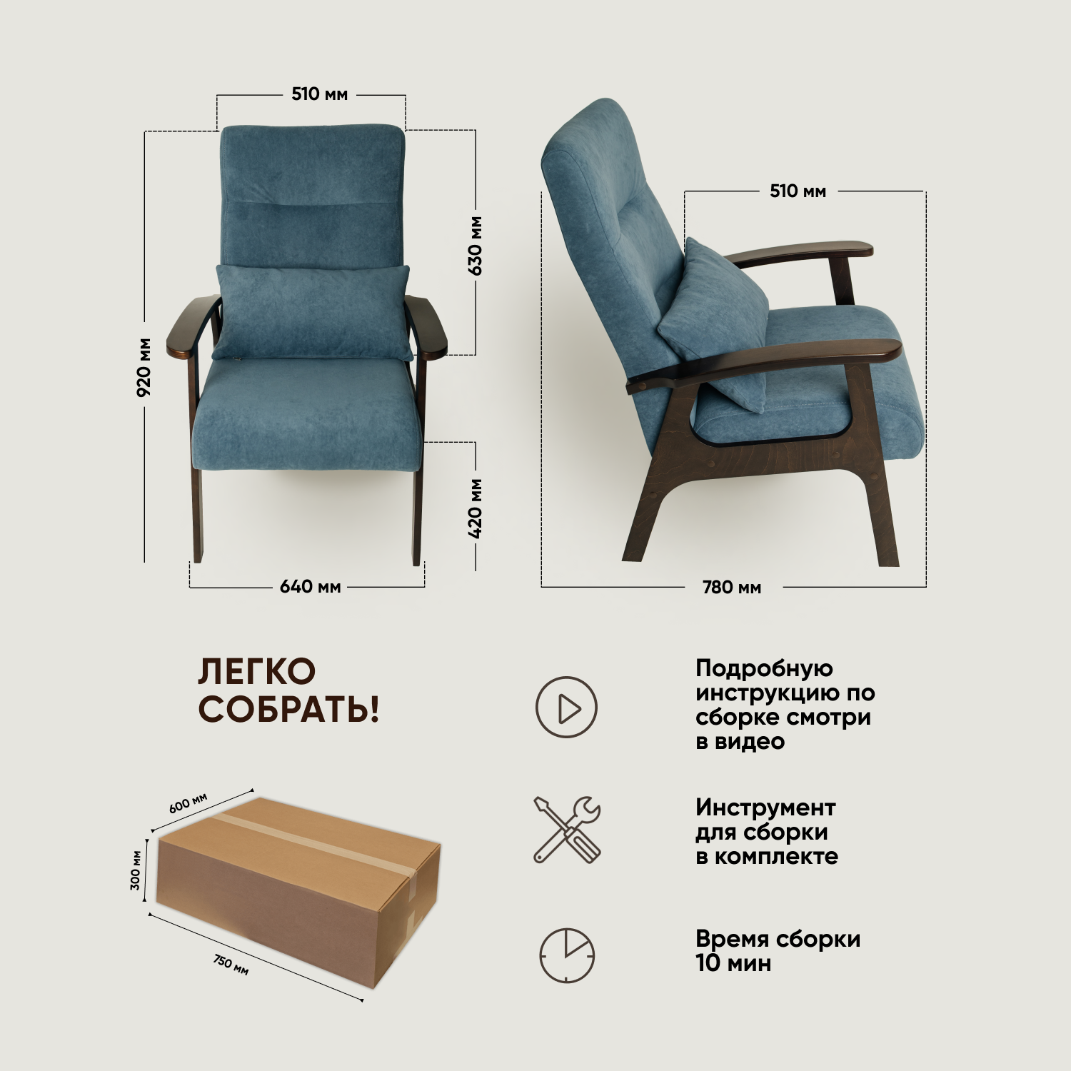 Кресло Норди с подушкой на деревянных ножках с подлокотниками, Велюр, LADY MAY интересное: