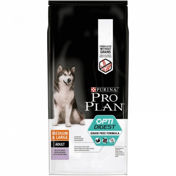 Pro Plan Grain Free Medium&Large корм для взрослых собак средних пород с чувствительным пищеварением Индейка, 12 кг.