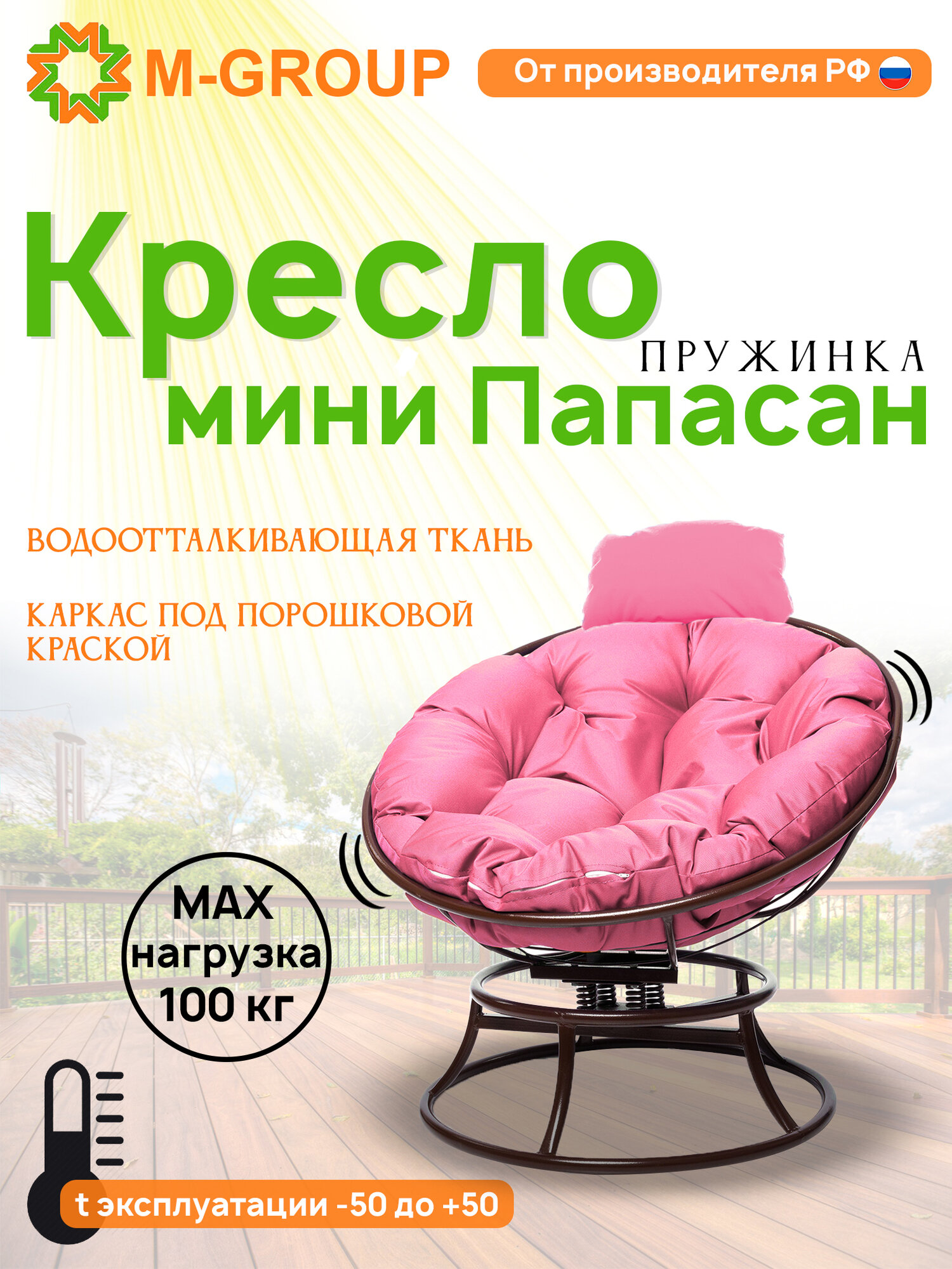 СохранитьКресло папасан-качалка мини без ротанга коричневое, розовая подушка интересное: