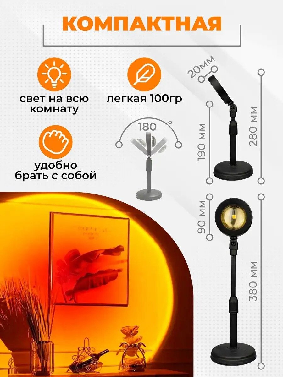 Светильник проектор лампа закат 16 цветов с пультом Sunset Lamp интересное: