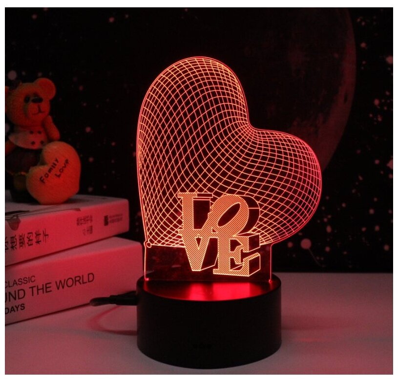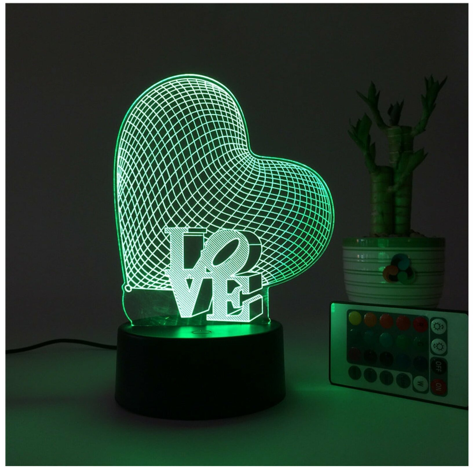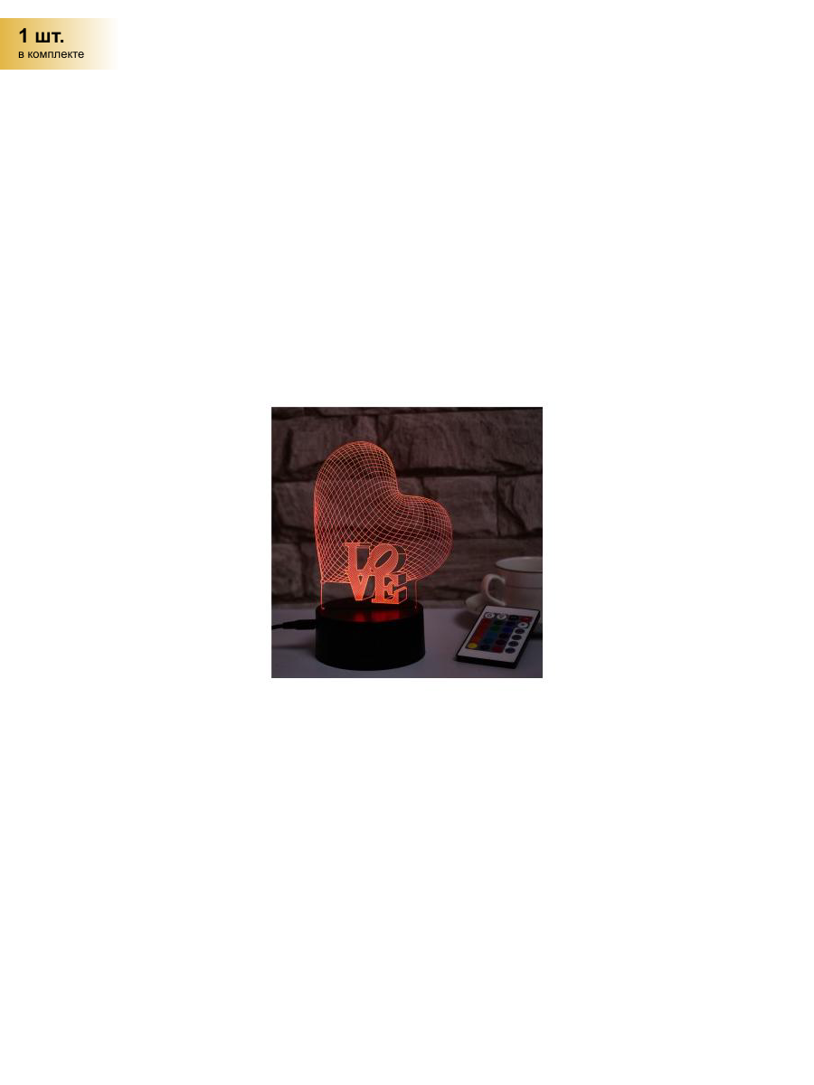 Ночник Camelion "Сердце", 3D-эффект, сенсорное управление, RGB-подсветка, 3Вт