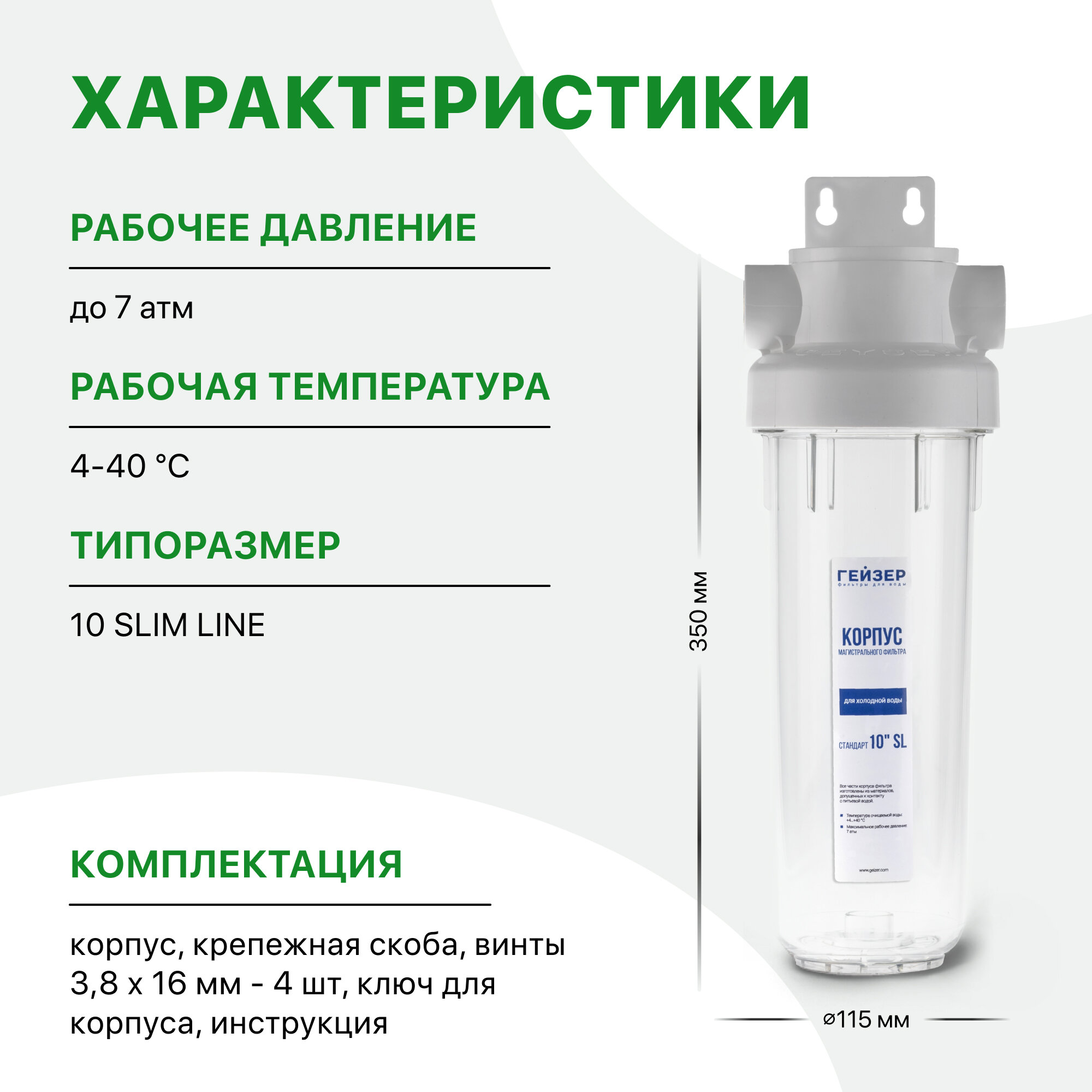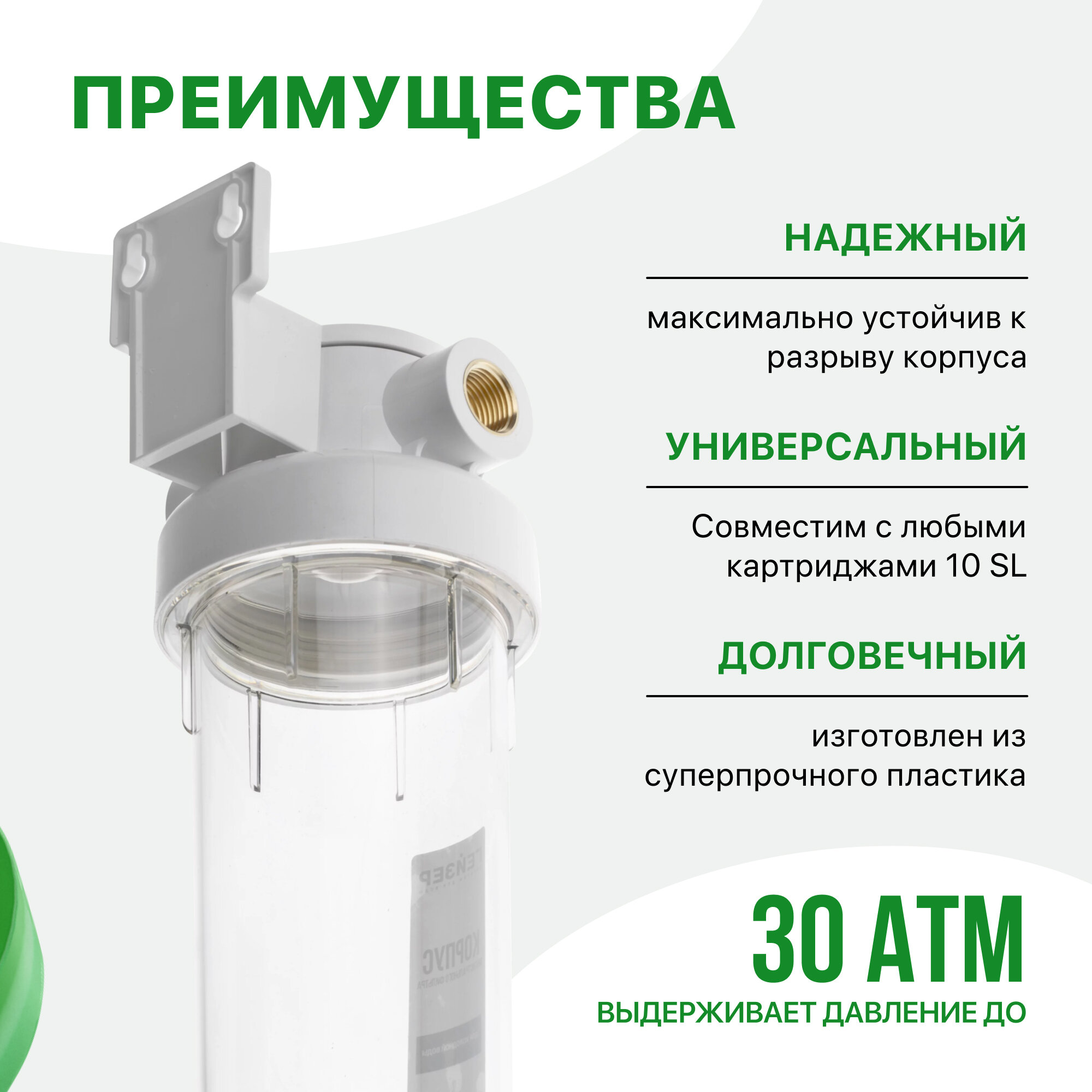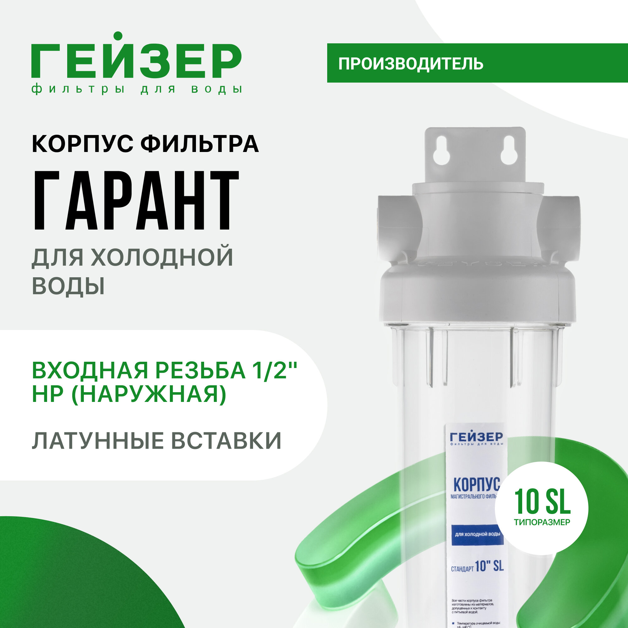 Корпус фильтра Гейзер Гарант для холодной воды пластик 10SL 1/2 ВР(г) х 1/2 ВР(г) прозрачный