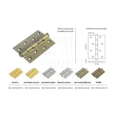 СохранитьПетля дверная Morelli универсальная MBU 100X70X3-4BB COF кофе, петля металлическая врезная для межкомнатных дверей интересное: