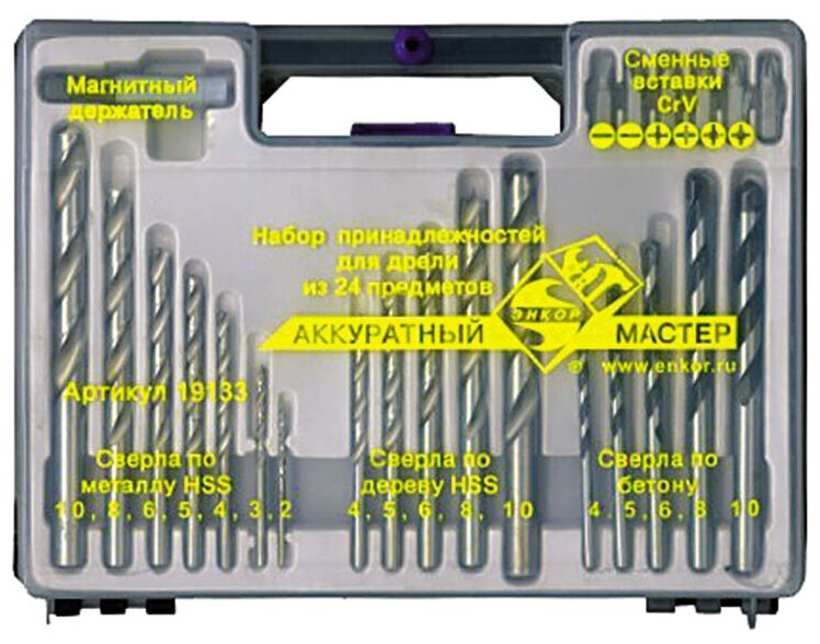 Ниже Вы можете прочитать отзывы на Набор сверл универсальный 24шт Энкор, ознакомится с подробными характеристиками, посмотреть интересные обзоры и фотографии на Набор сверл универсальный 24шт Энкор.