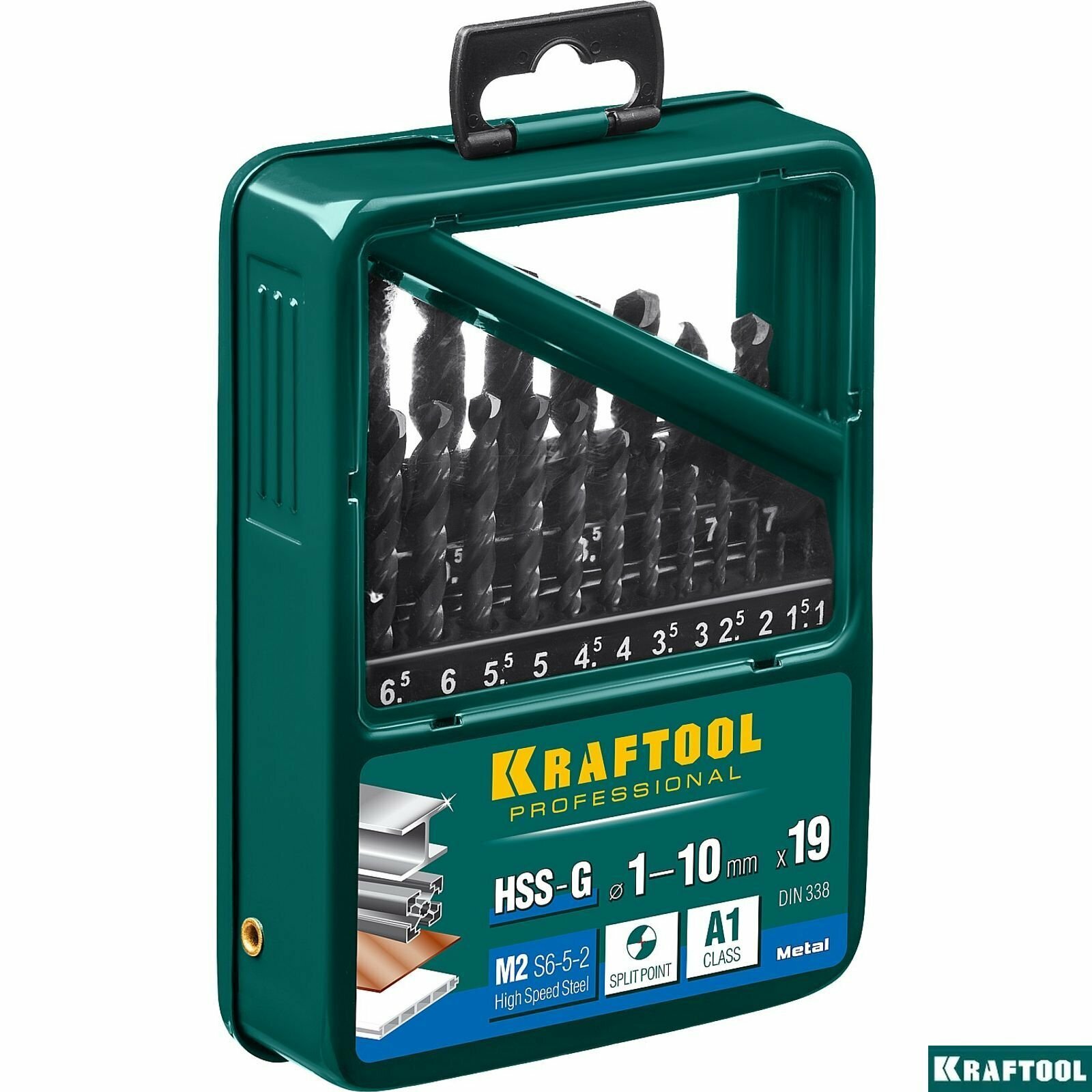 KRAFTOOL HSS-G 19шт(1-10мм), Набор сверл по металлу HSS-G, сталь М2(S6-5-2) ( 29651-H19 )