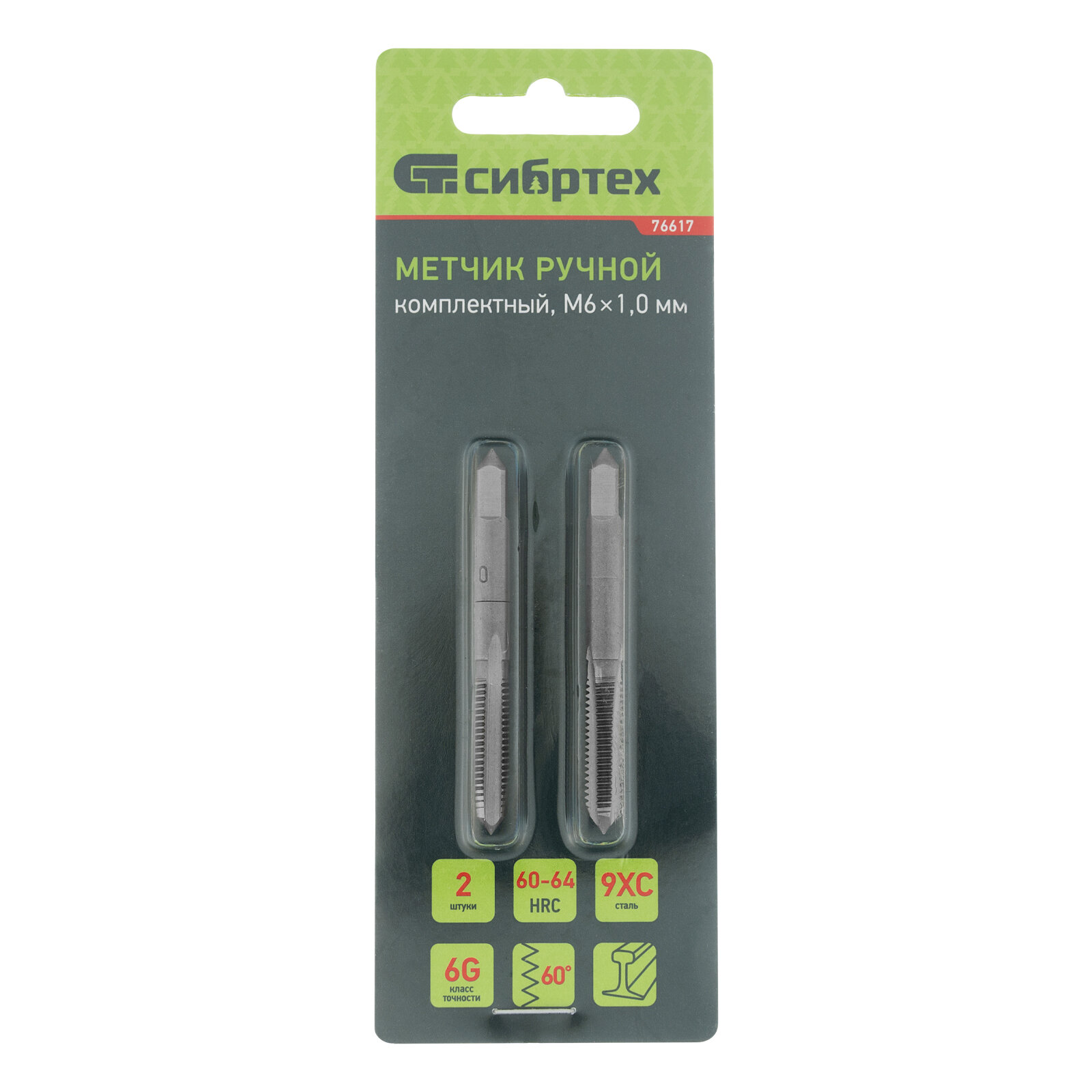 Метчик ручной Сибртех 76617 М6 х 1.0 мм, комплект из 2 шт.