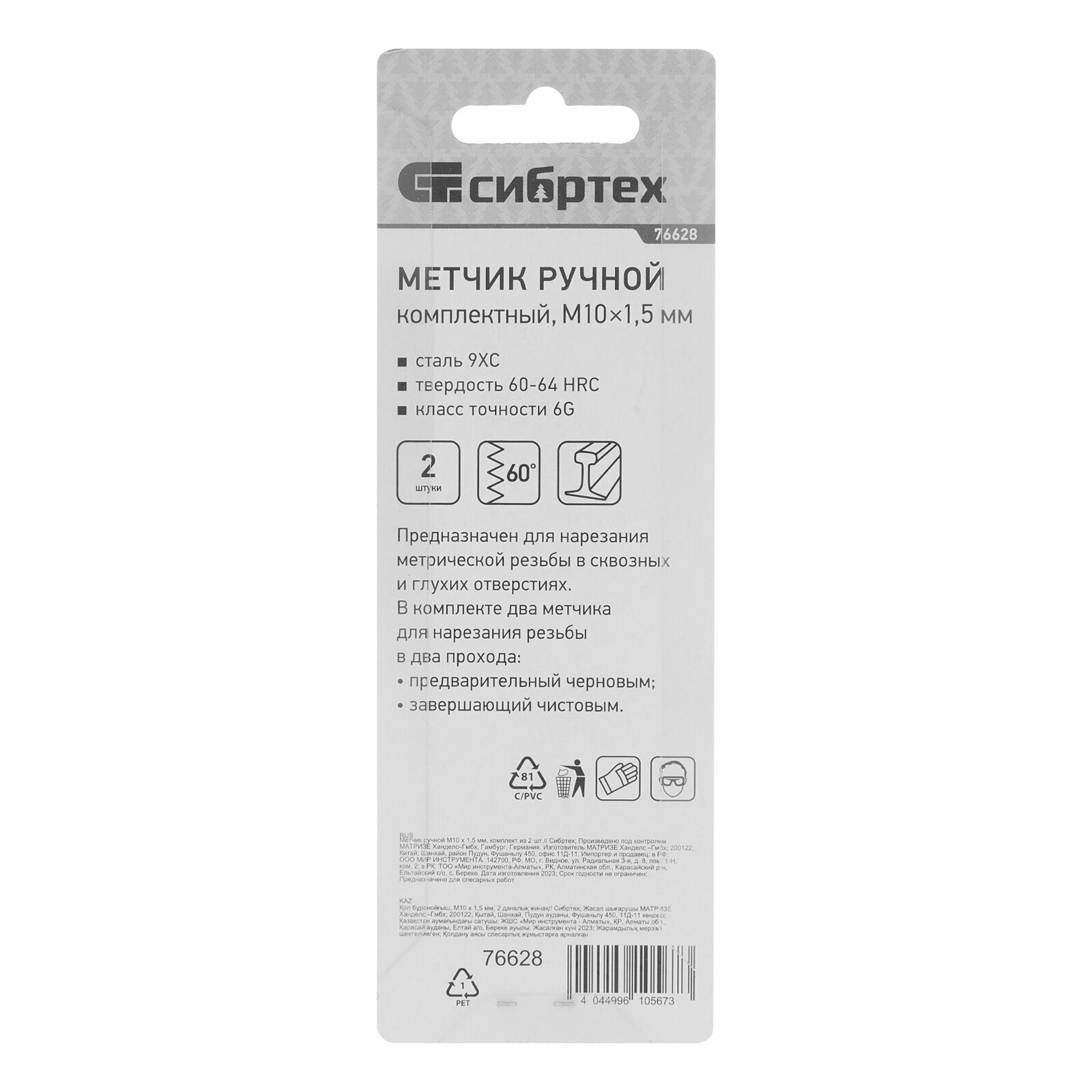 Купить Метчик ручной Сибртех М10 х 1,5 мм, комплект из 2 шт 76628