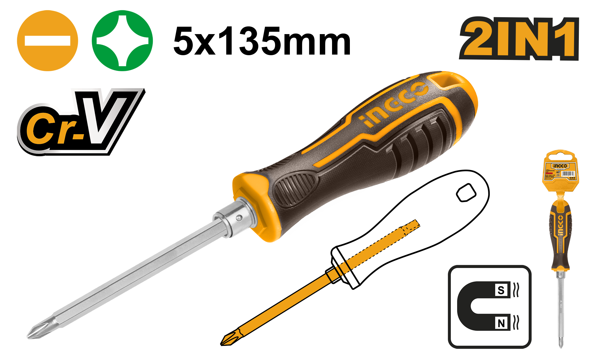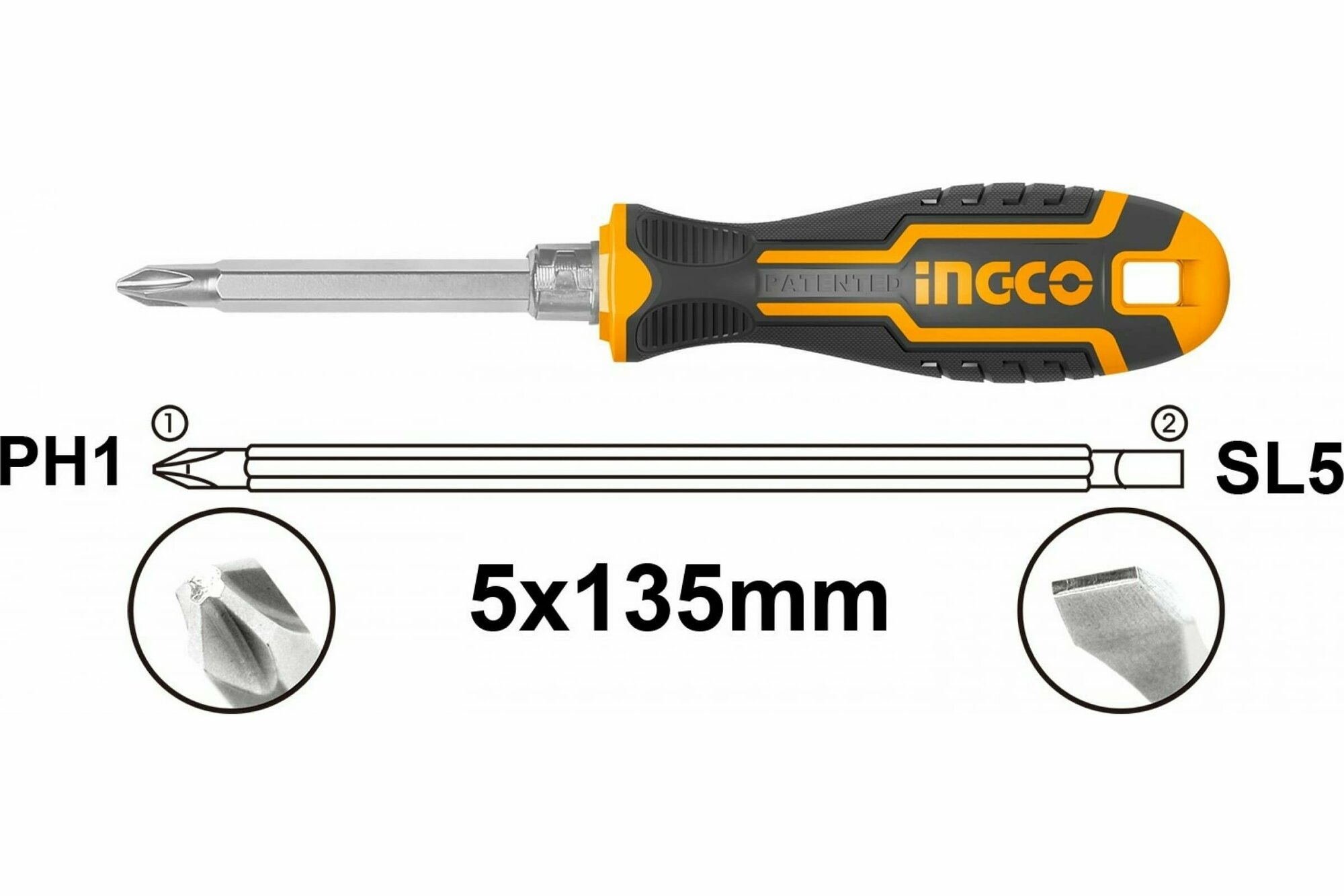 Купить INGCO Отвертка двухсторонняя 2 в 1 SL5+PH1 INDUSTRIAL AKISD0203