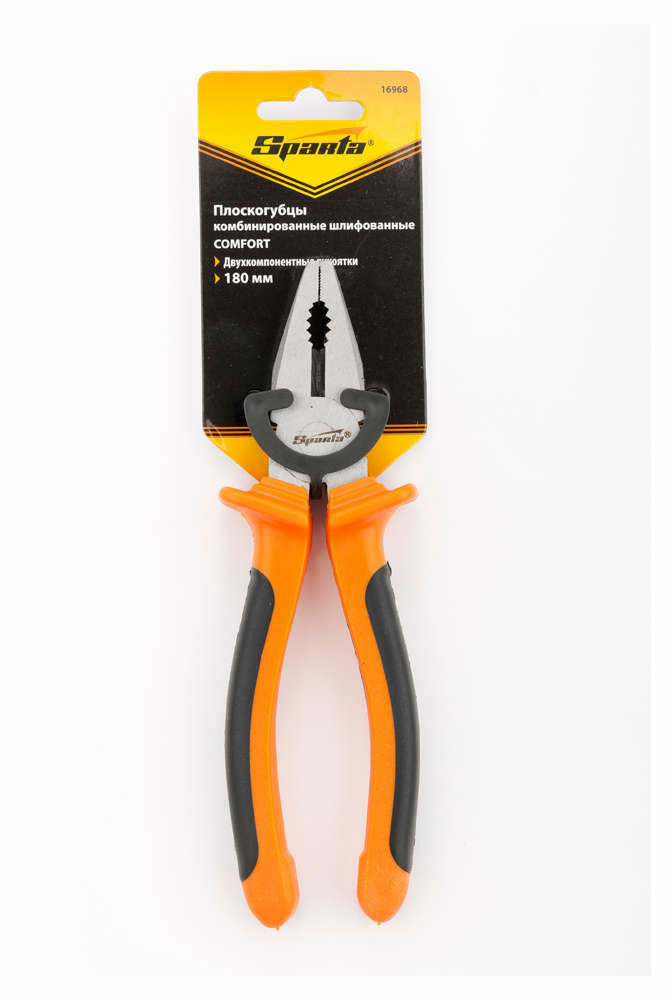 Плоскогубцы Sparta Comfort, 180 мм, комбинированные шлифованные, двухкомпонентные рукоятки 16968