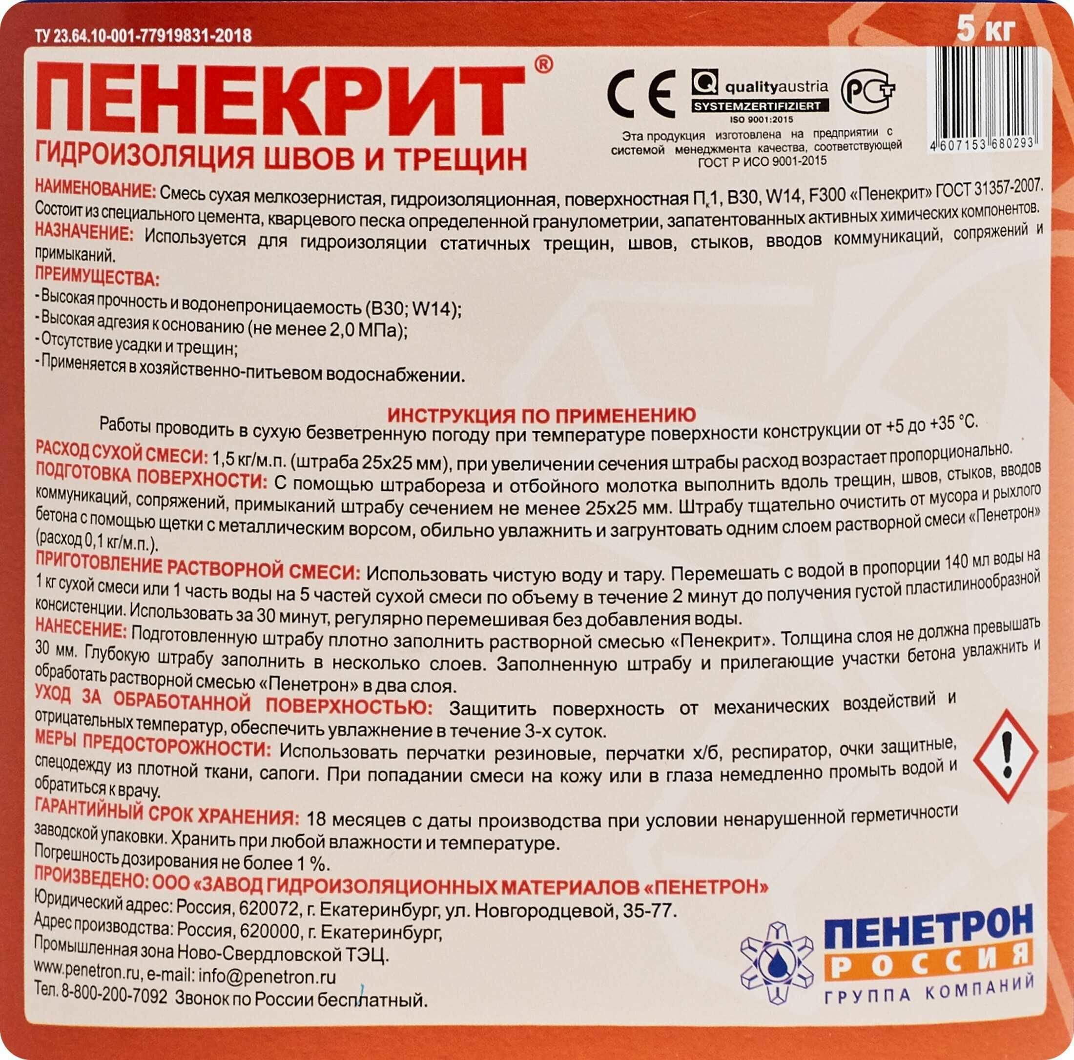 Ниже Вы можете прочитать отзывы на Гидроизоляция Пенекрит 5 кг, ознакомится с подробными характеристиками, посмотреть интересные обзоры и фотографии на Гидроизоляция Пенекрит 5 кг.