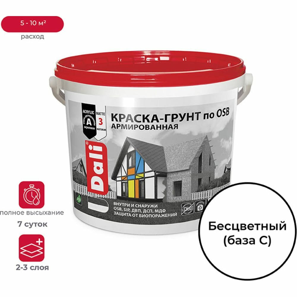 Краска-грунт по OSB Dali, армированная, матовая, база C, бесцветная, 3 кг