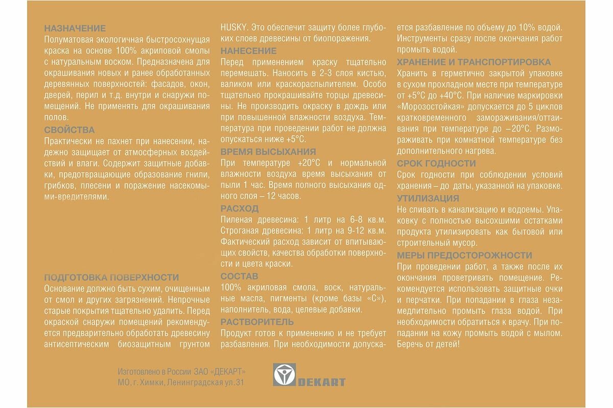 Краска по дереву HUSKY SIBERIAN Слоновая кость RAL 1014, акриловая полуматовая, 0,9л