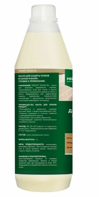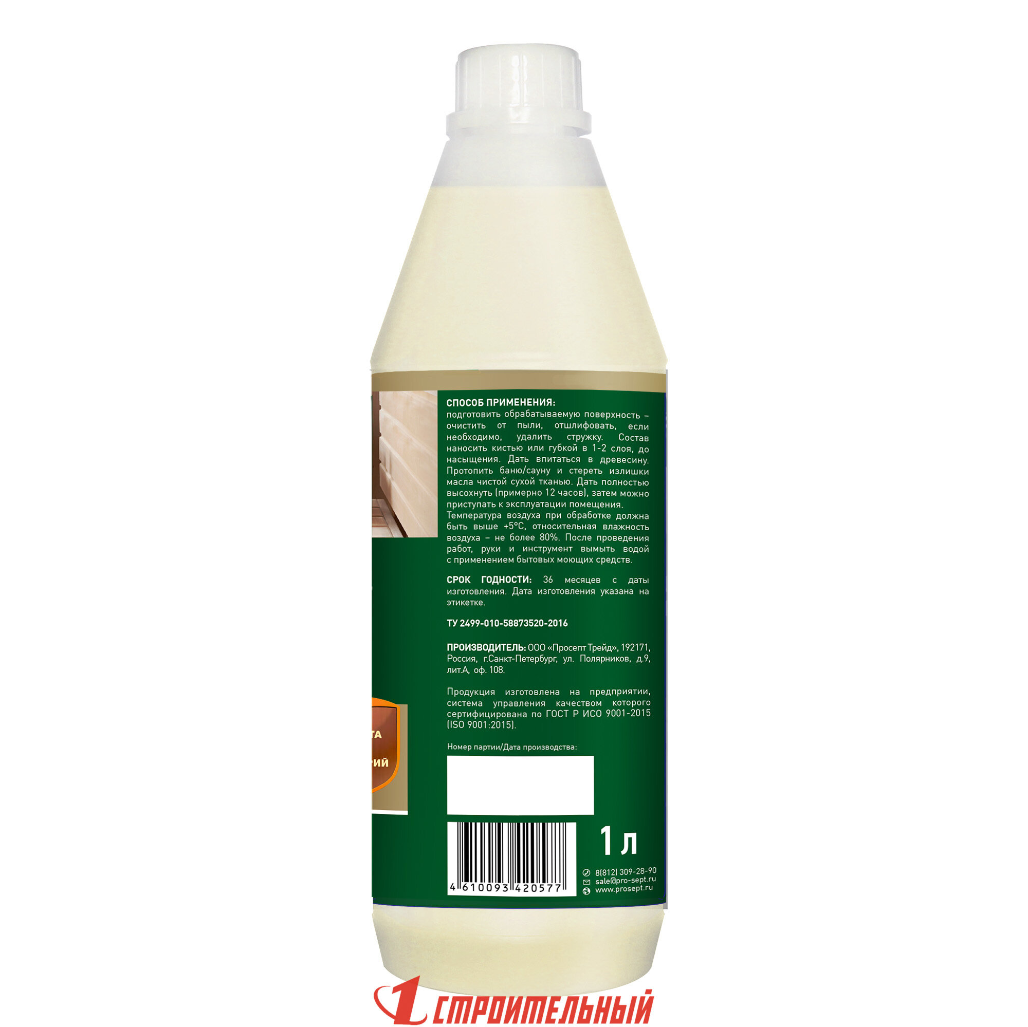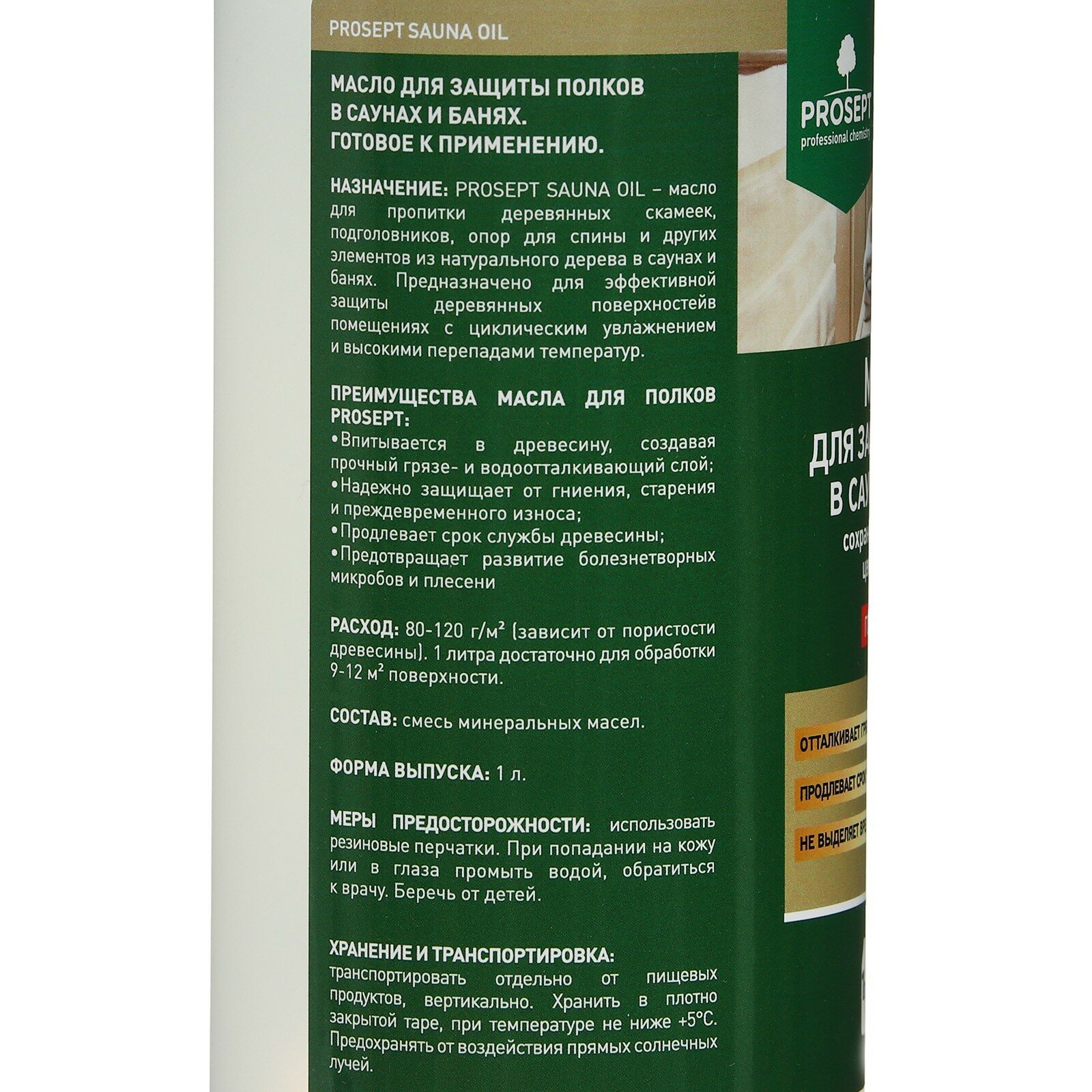 Масло для защиты полков Prosept sauna ol, в саунах и банях, готовый состав, 1 л