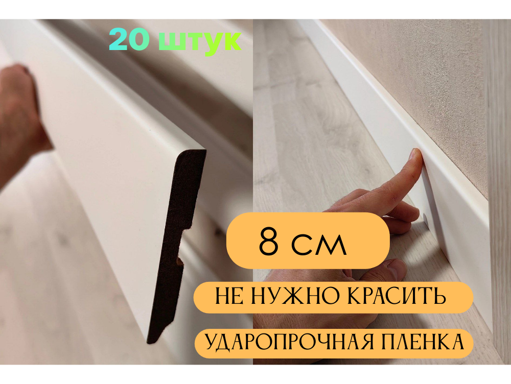 Плинтус МДФ Белый 8*1*215 см тонкий 20шт