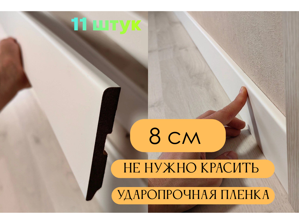 Плинтус МДФ Белый 8*1*215 см тонкий 11шт