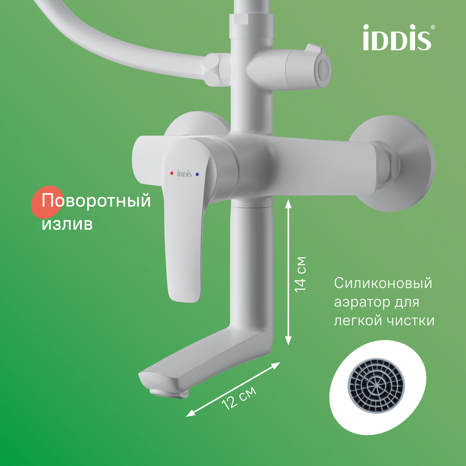 Смеситель с верхним душем и изливом IDDIS Ray белый матовый RAYWT3Fi06