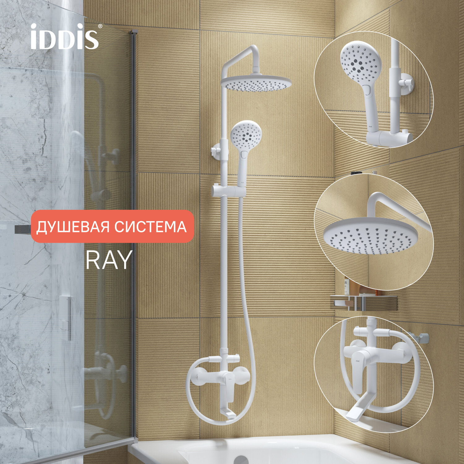 Душевая система 35к IDDIS RAYWT3Fi06 "Ray" лейка "Тропический душ", белый матовый
