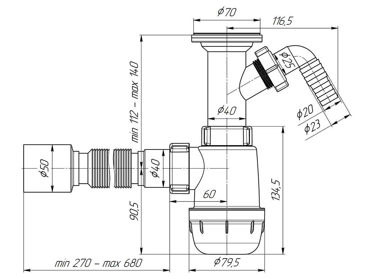Сифон сливной для кухонных моек с диаметром слива 50-60 мм