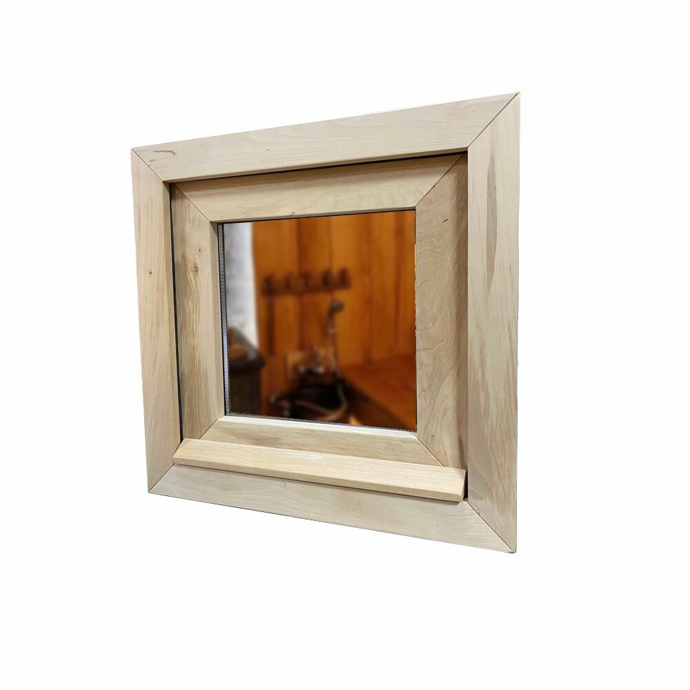 Деревянное окно из ольхи для парного помещения в бане и сауне Woodson с однокамерным стеклопакетом бронзового оттенка и деревянной ручкой, окно размером 50х50 см интересное: