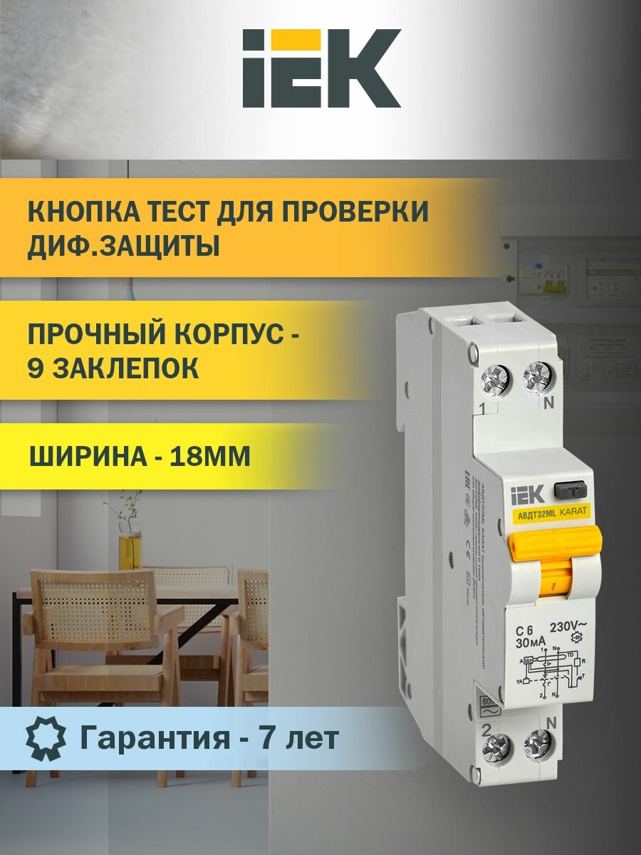 Выкл. авт. диф. тока АВДТ32МL С6 30мА KARAT IEK | код. MVD12-1-006-C-030 | IEK ( 1шт. )