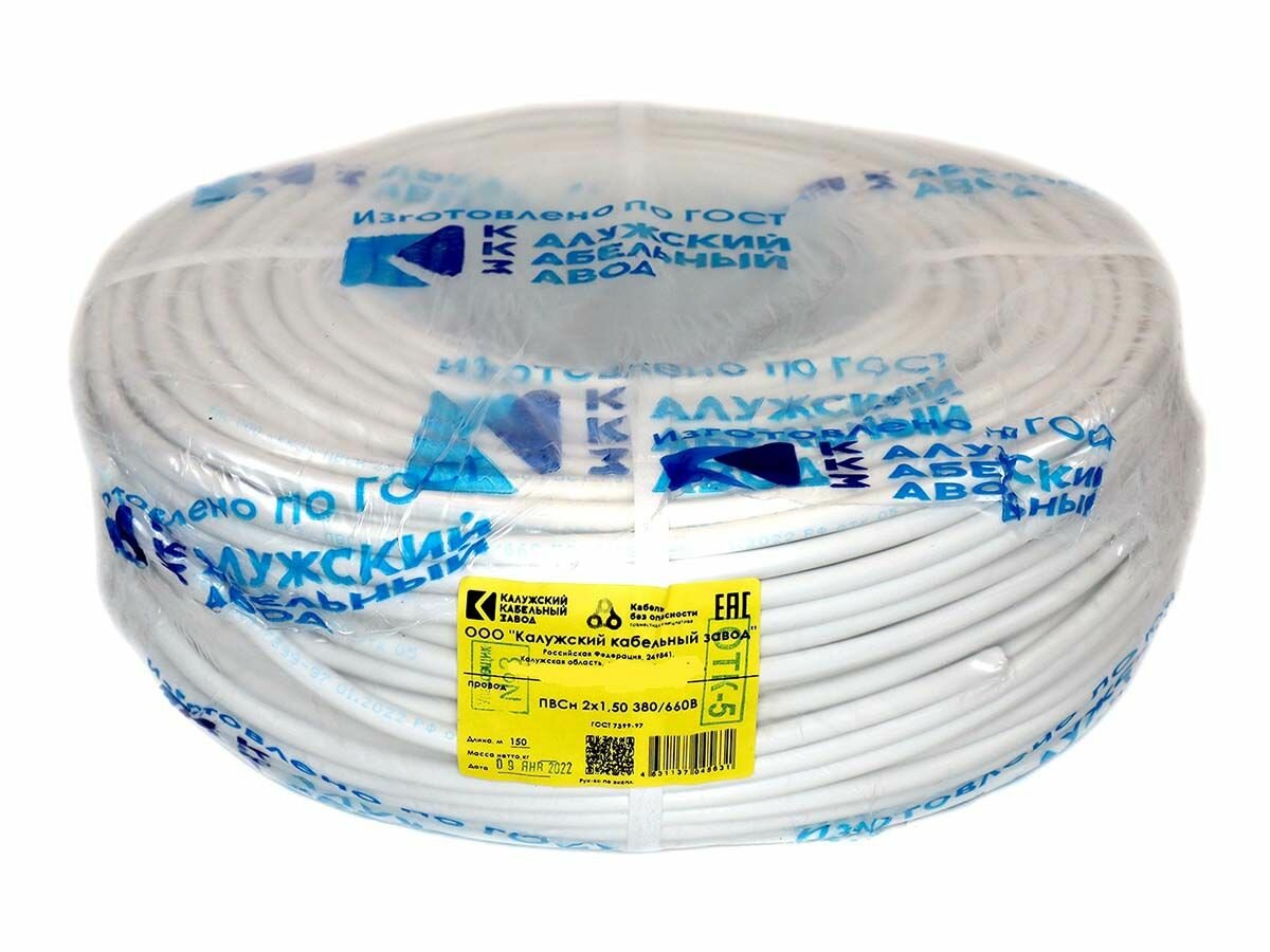 Провод ПВС 2х2,5 ГОСТ Калужский кабельный завод. Белый. 15 метров