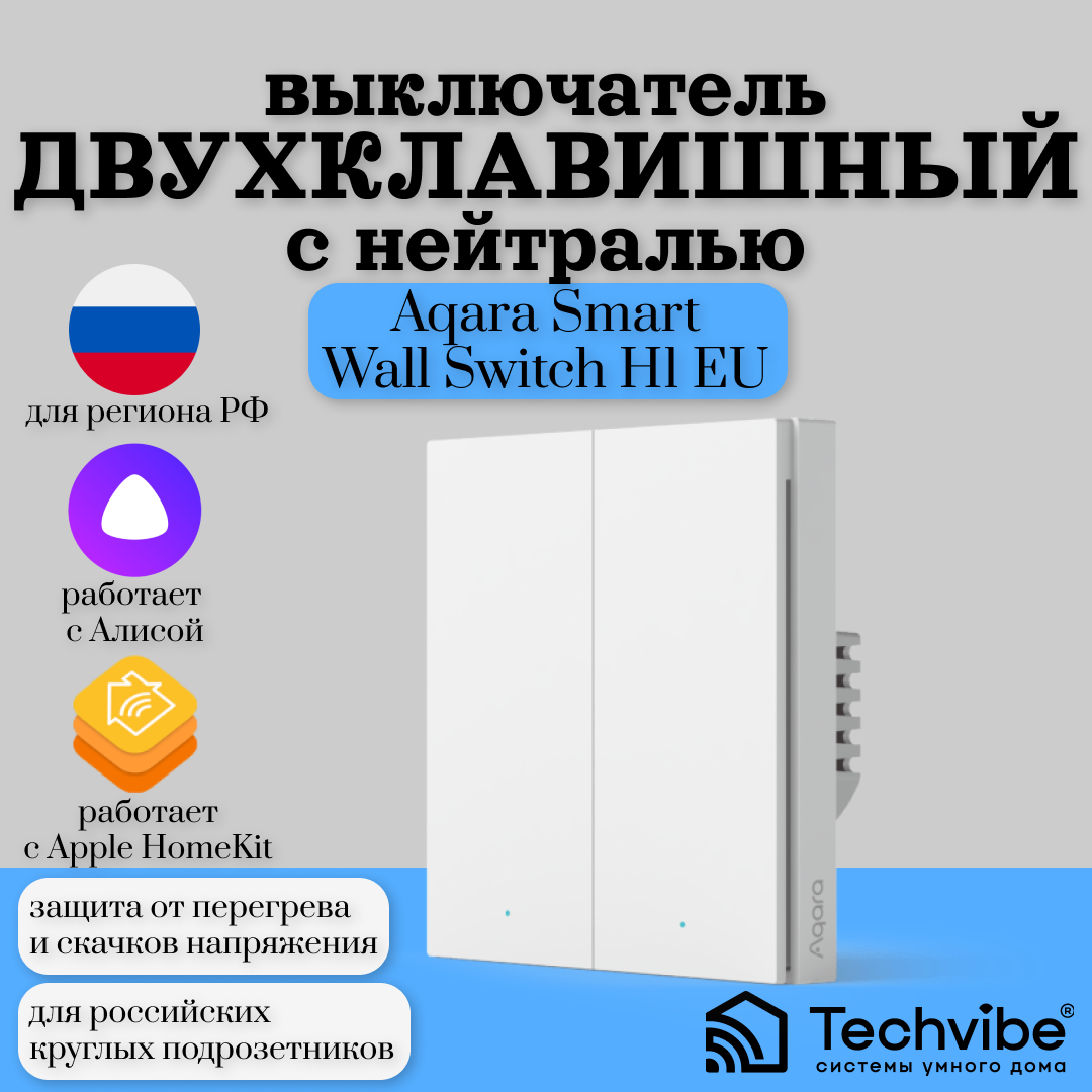Умный выключатель двухклавишный с нейтралью Aqara H1 WS-EUK04, умный дом, белый