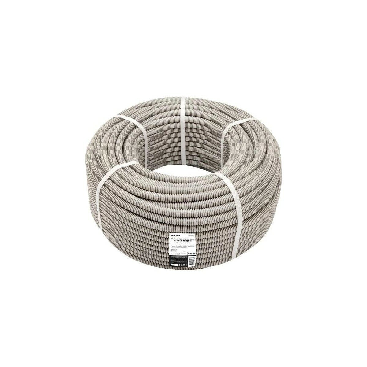 Гофрированная труба из ПВХ REXANT с зондом d 16 мм серая 100 м 28-0016-2