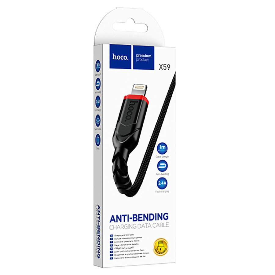 Купить Кабель Hoco X59 Victory, USB - Lightning, 2.4 A, 1м, черный