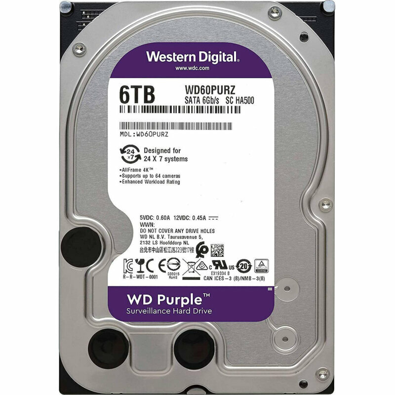 Жесткий диск Western Digital Purple Surveillance 6Тб Наличие Sata 3.0 256 Мб 5400 об/мин 3,5" Wd64pu