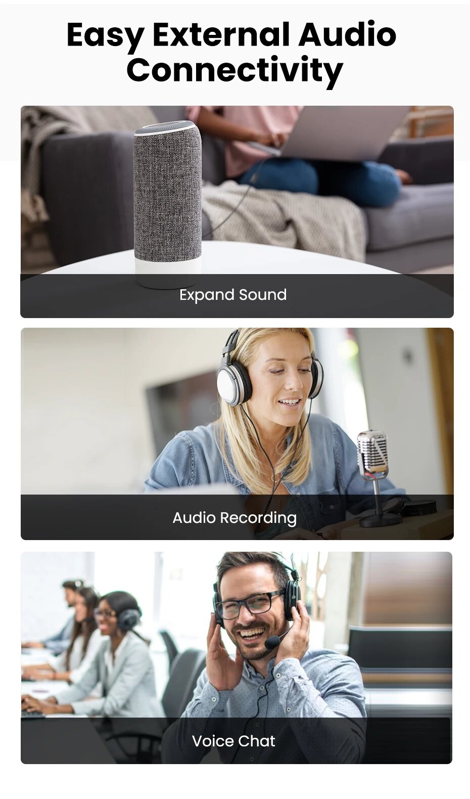 Внешняя звуковая карта UGREEN, 2Ports 15cm интересное: