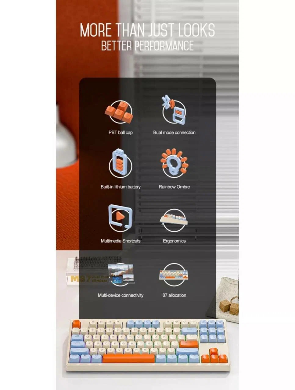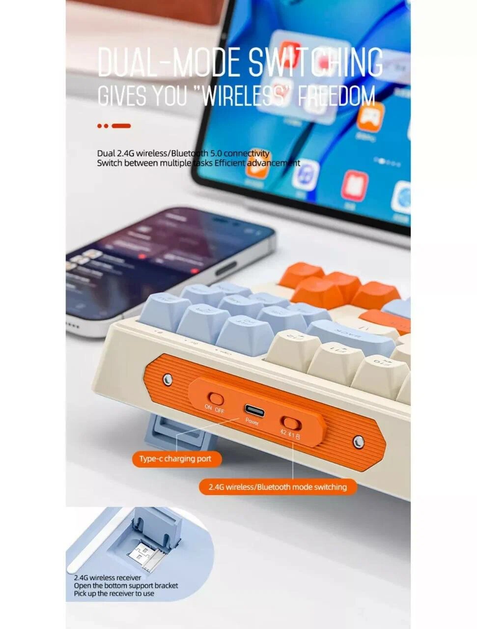 Клавиатура игровая Wolf M87, радиоканал, Bluetooth, RGB подсветка интересное: